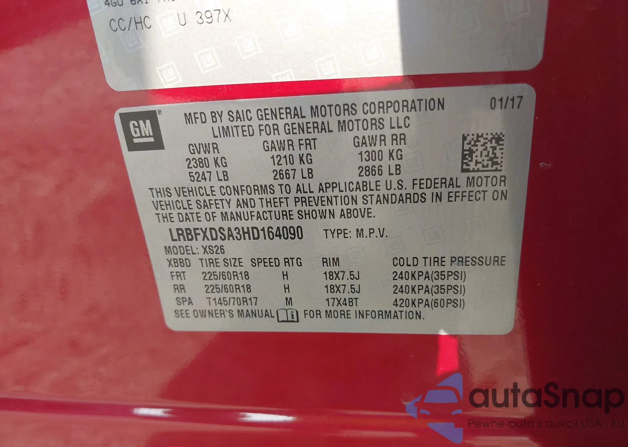 • VIN LRBFXDSA3HD164090