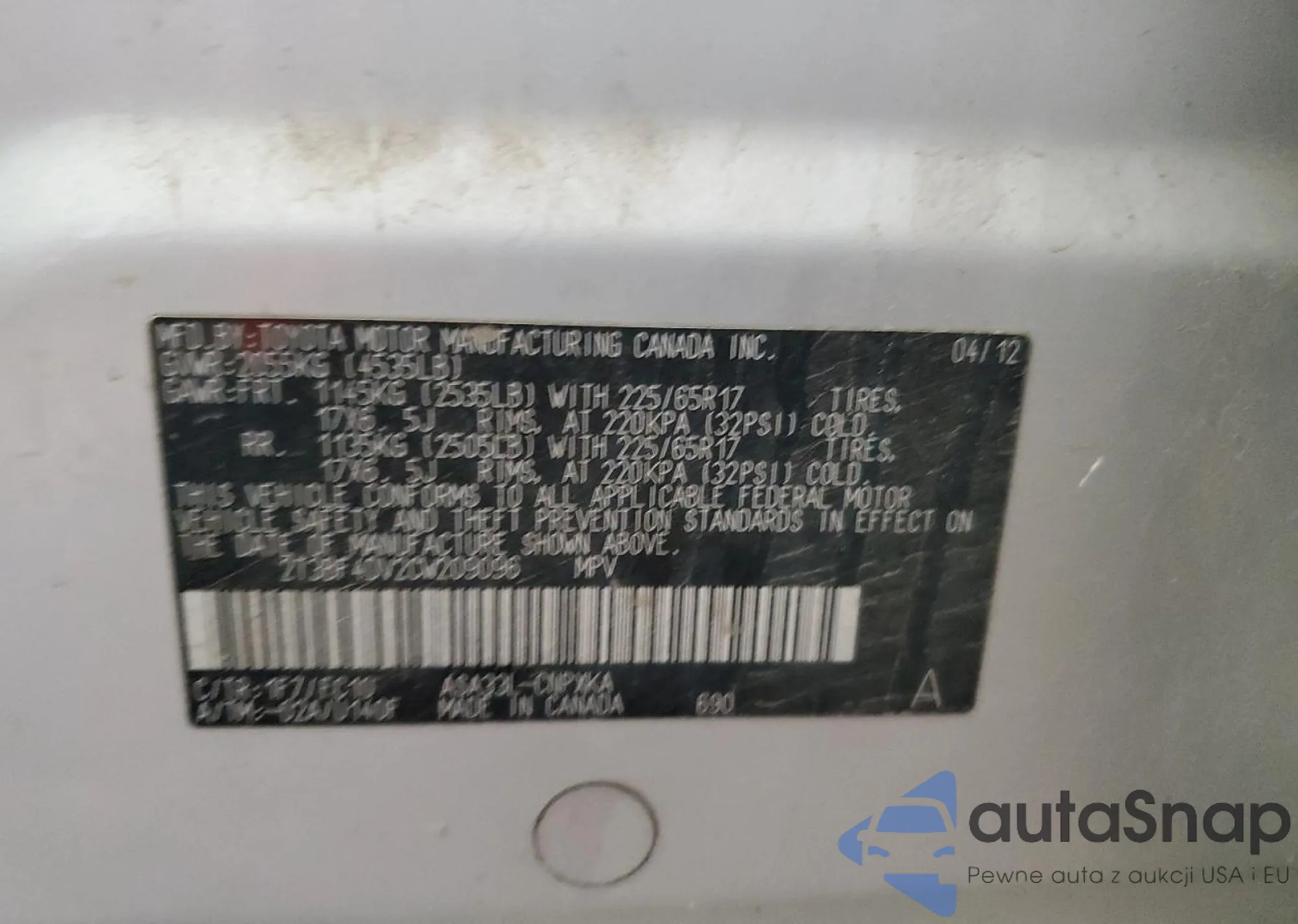 • VIN 2T3BF4DV2CW209096