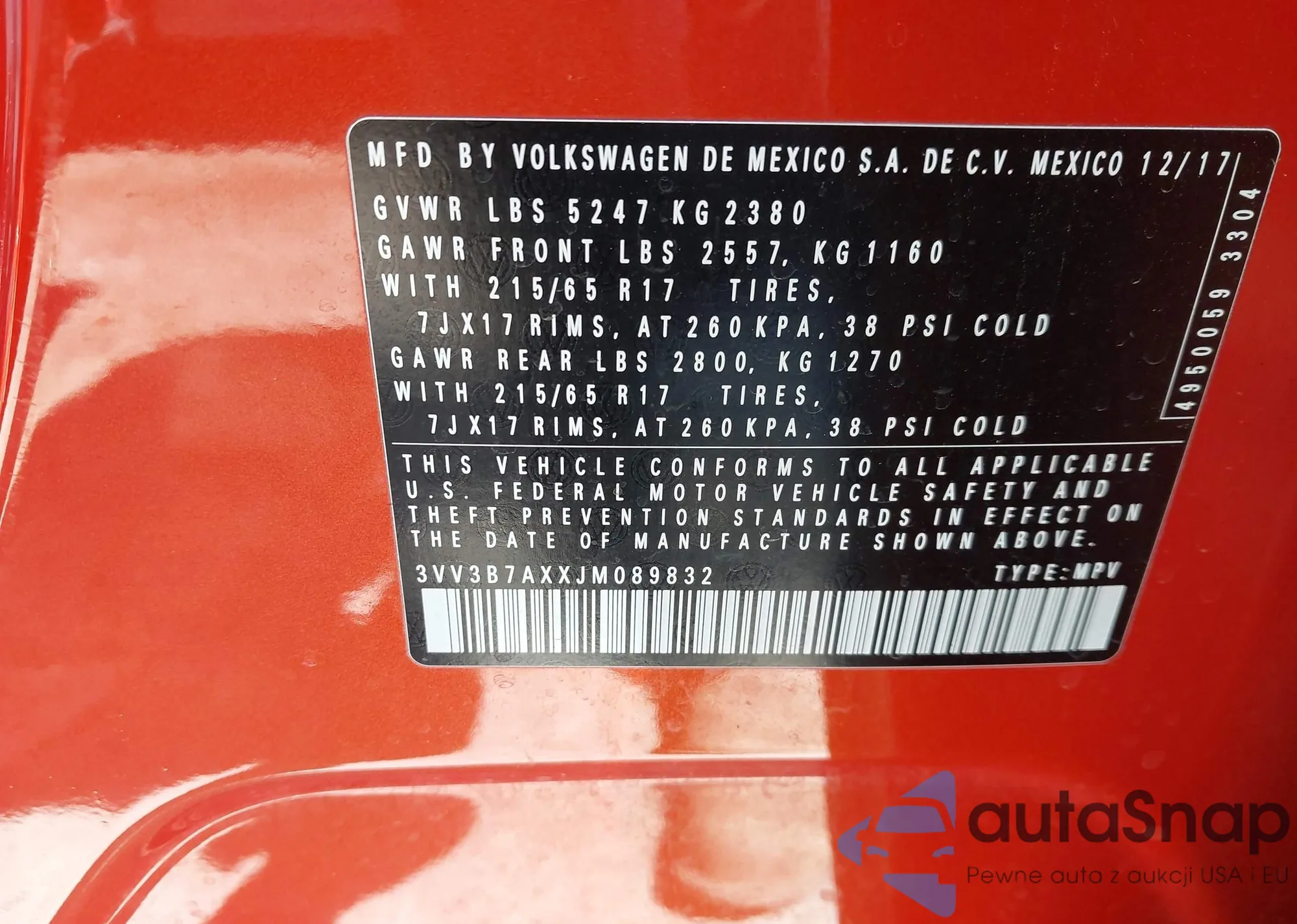 • VIN 3VV3B7AXXJM089832