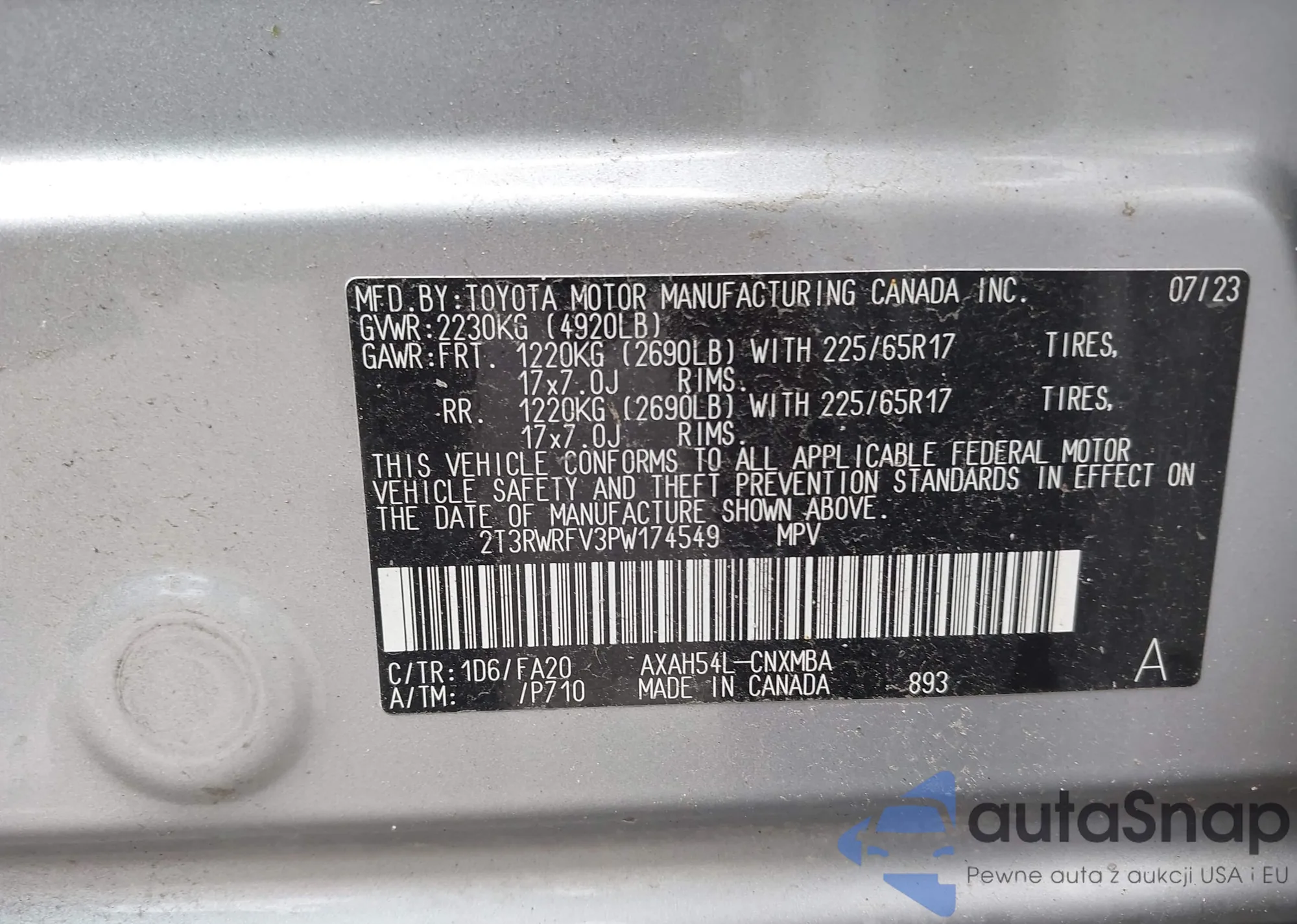 LOT: 42986800 VIN: 2T3RWRFV3PW174549