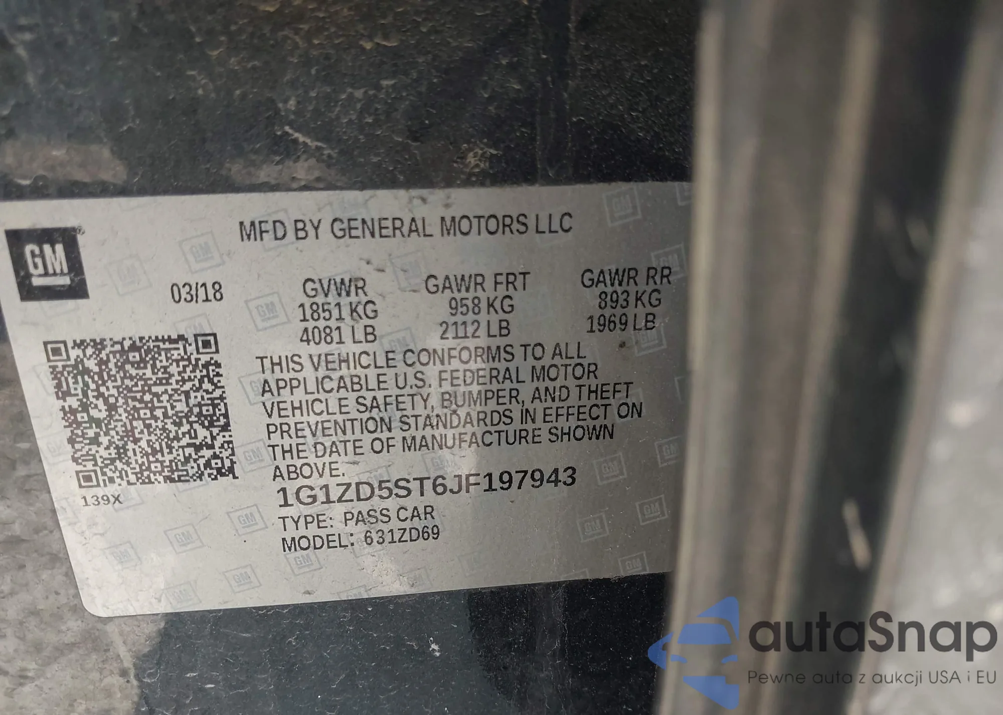 LOT: 42659622 VIN: 1G1ZD5ST6JF197943