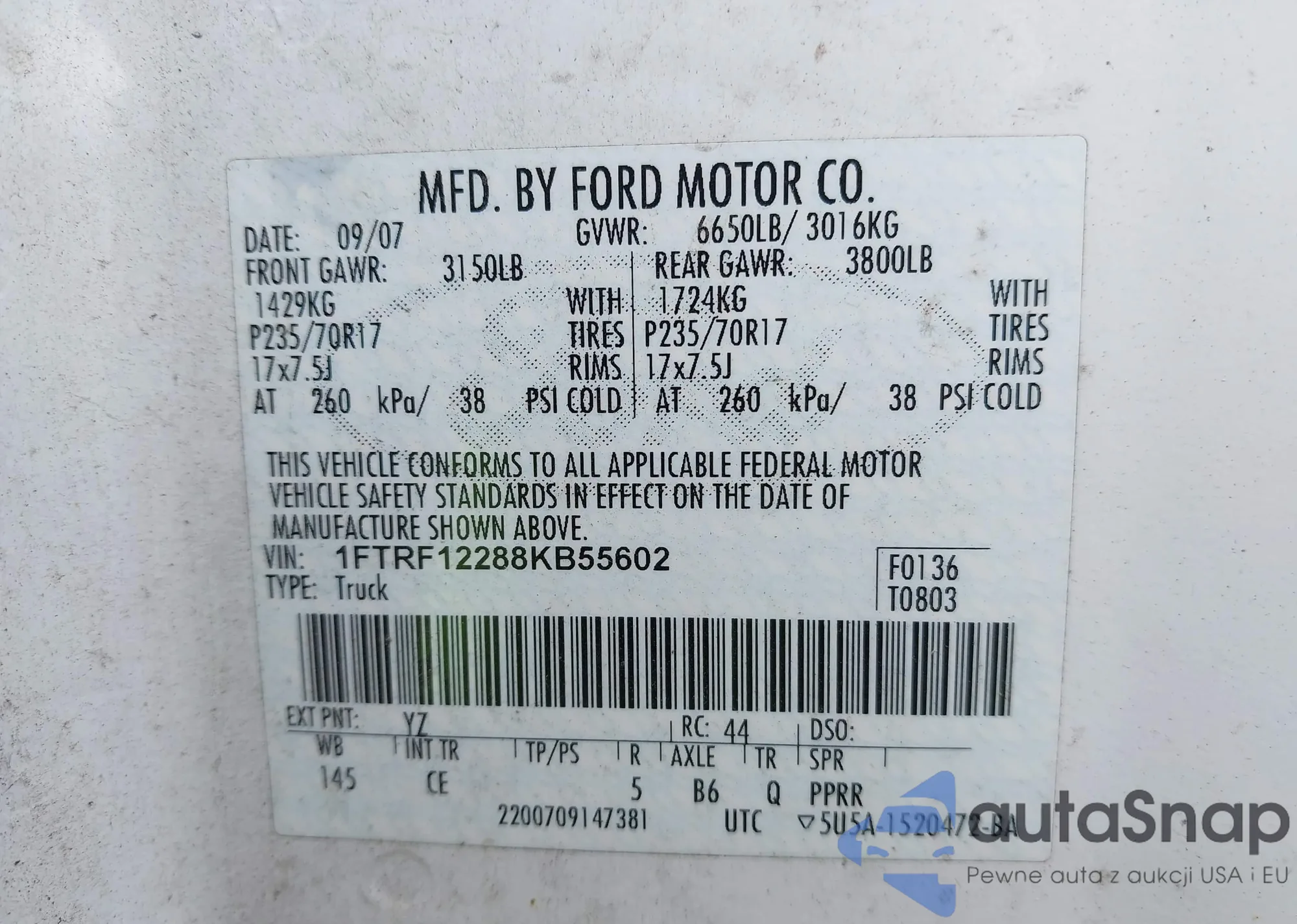 • VIN 1FTRW08L63KA98111