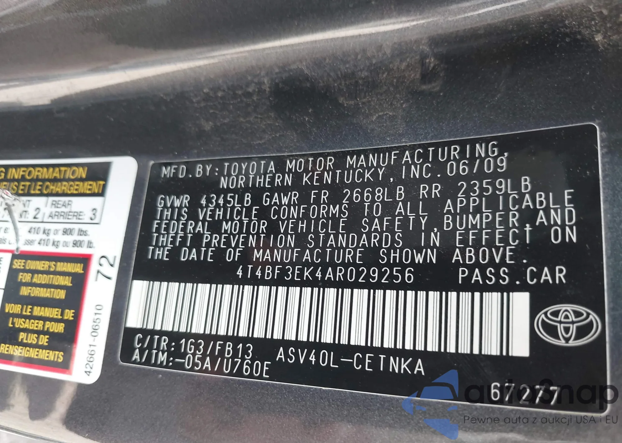• VIN 4T4BF3EK4AR029256