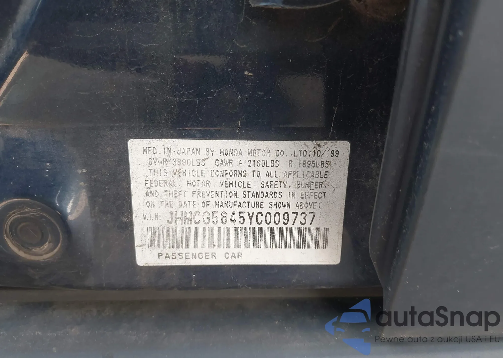 LOT: 43101296 VIN: 2HNYD18831H513502