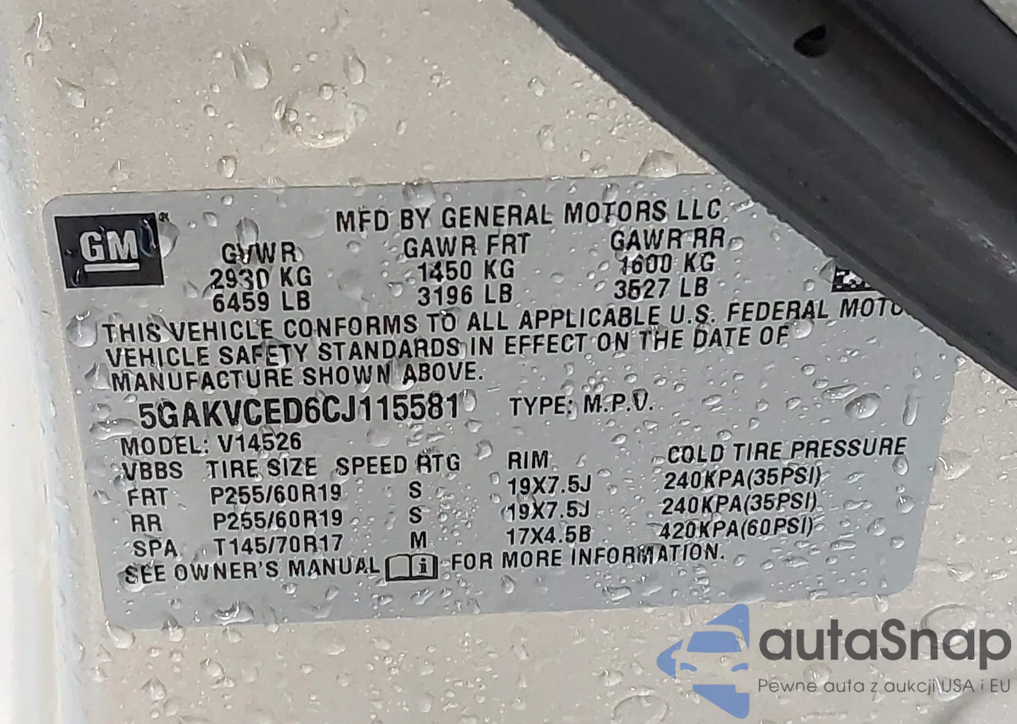 LOT: 42998615 VIN: 5GAKVCED6CJ115581