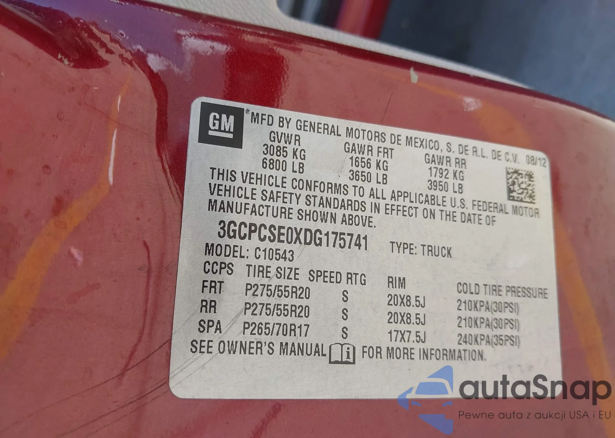 • VIN 3GCPCSE0XDG175741