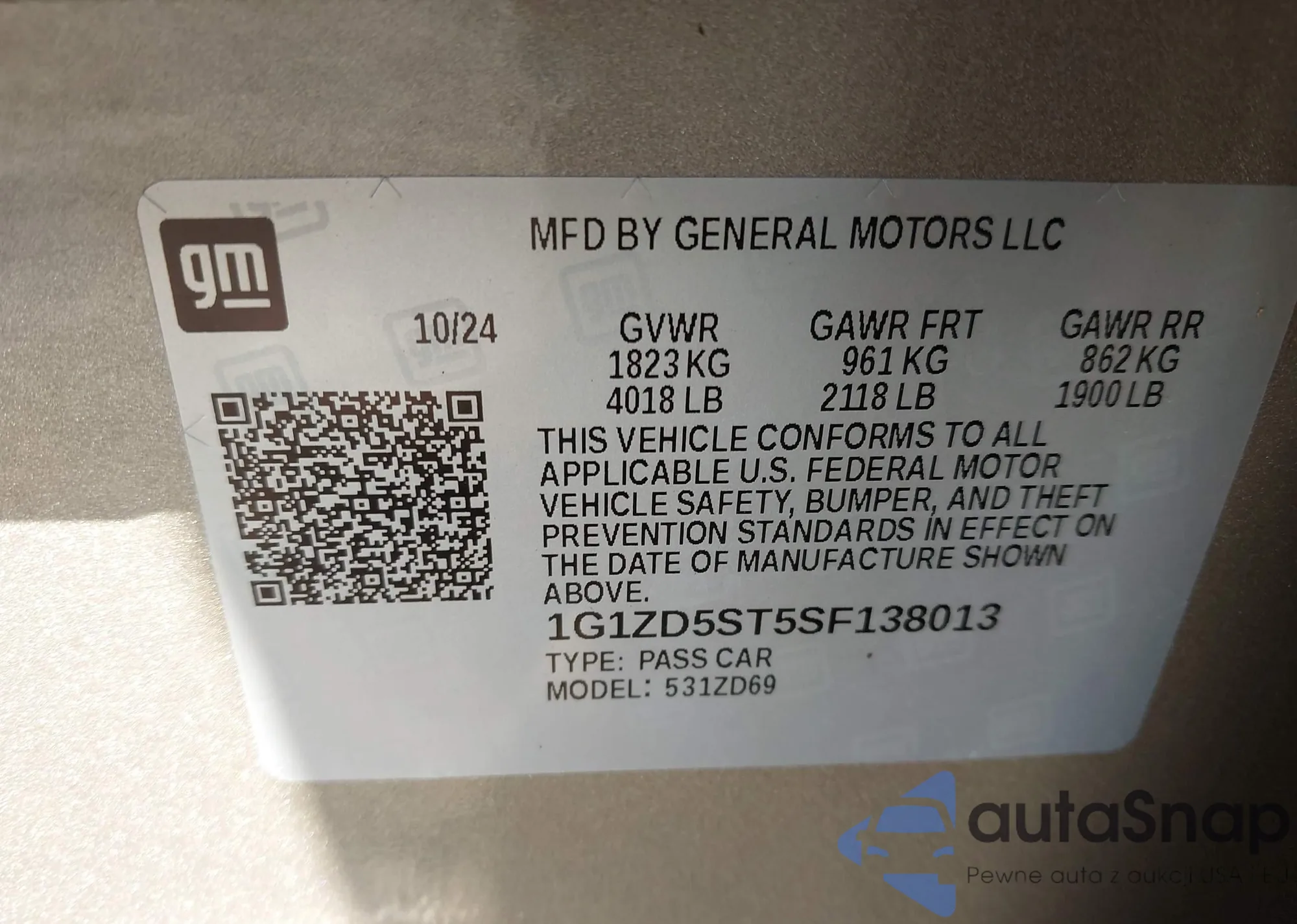 LOT: 43107924 VIN: 1G1ZD5ST5SF138013