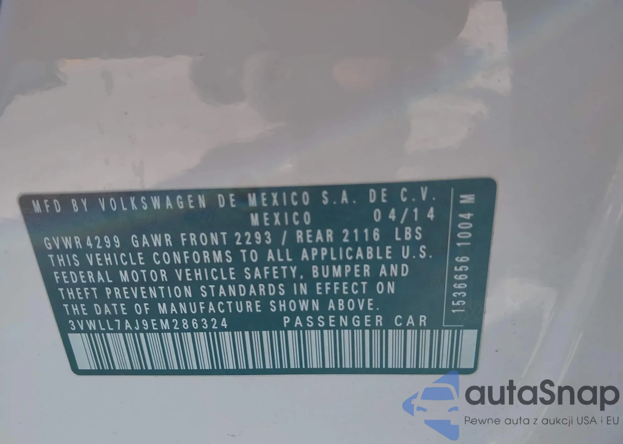 • VIN 3VWLL7AJ9EM286324