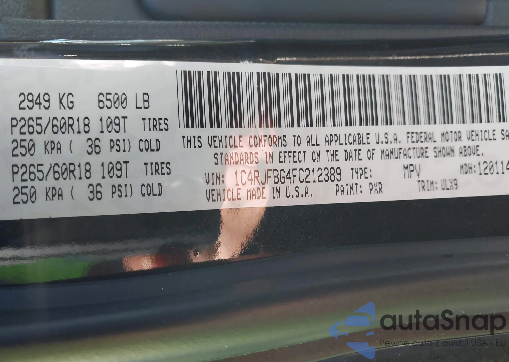 LOT: 43035460 VIN: 1C4RJEAG3CC142584