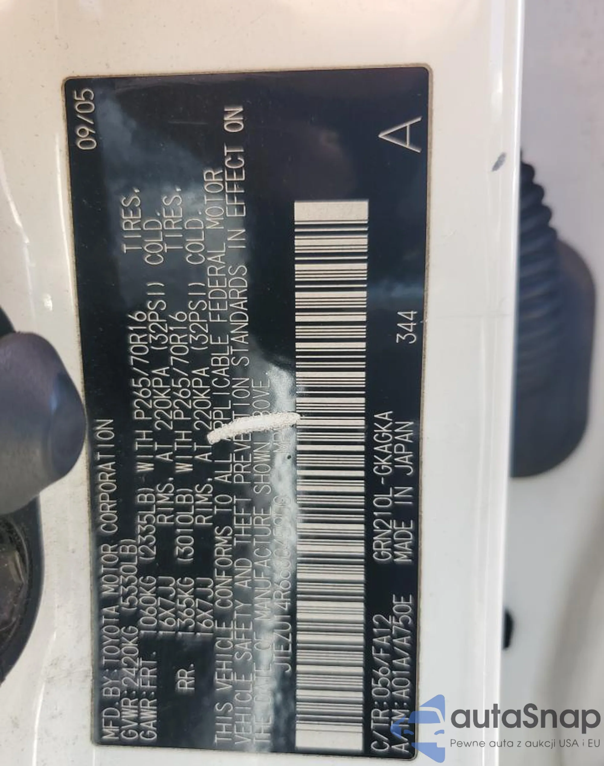 LOT: 65692205 VIN: WP0CD29958S708310
