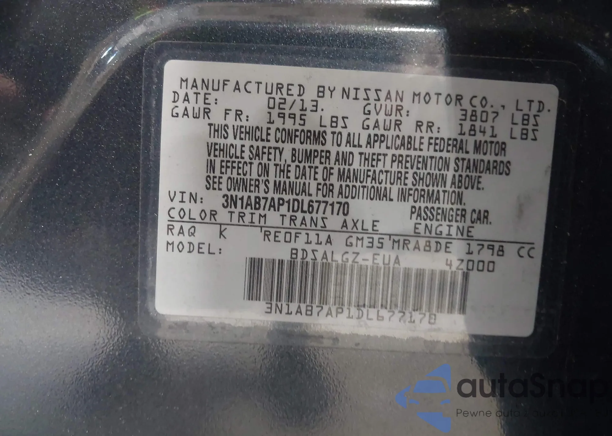 • VIN 3N1AB7AP1DL677170