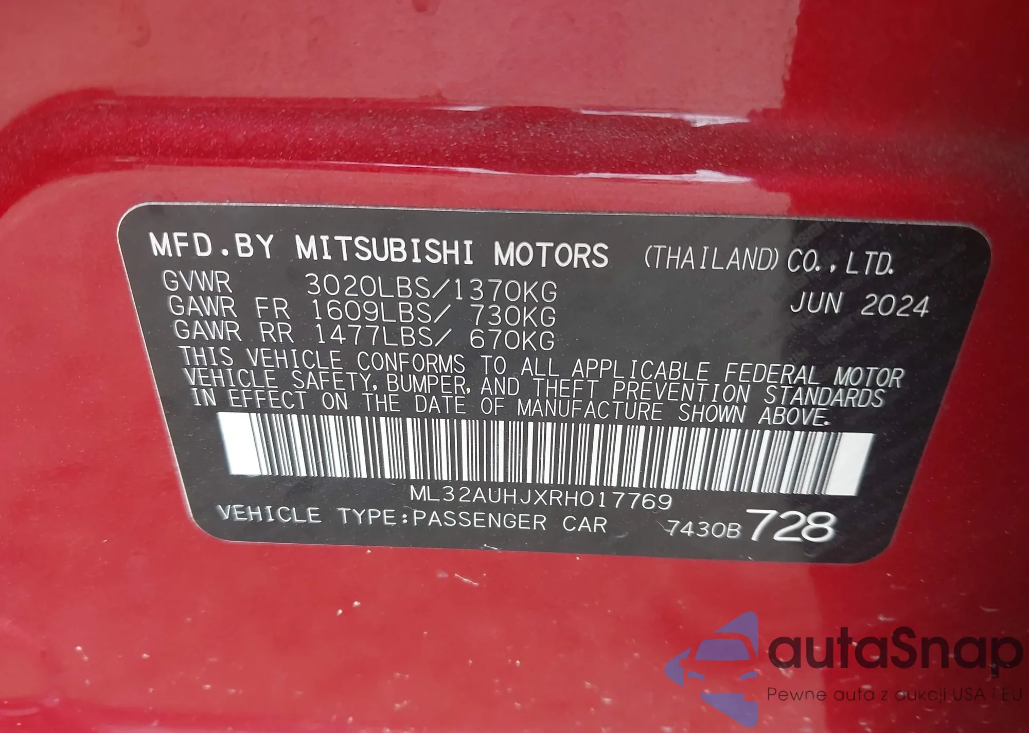 LOT: 43100425 VIN: ML32AUHJXRH017769