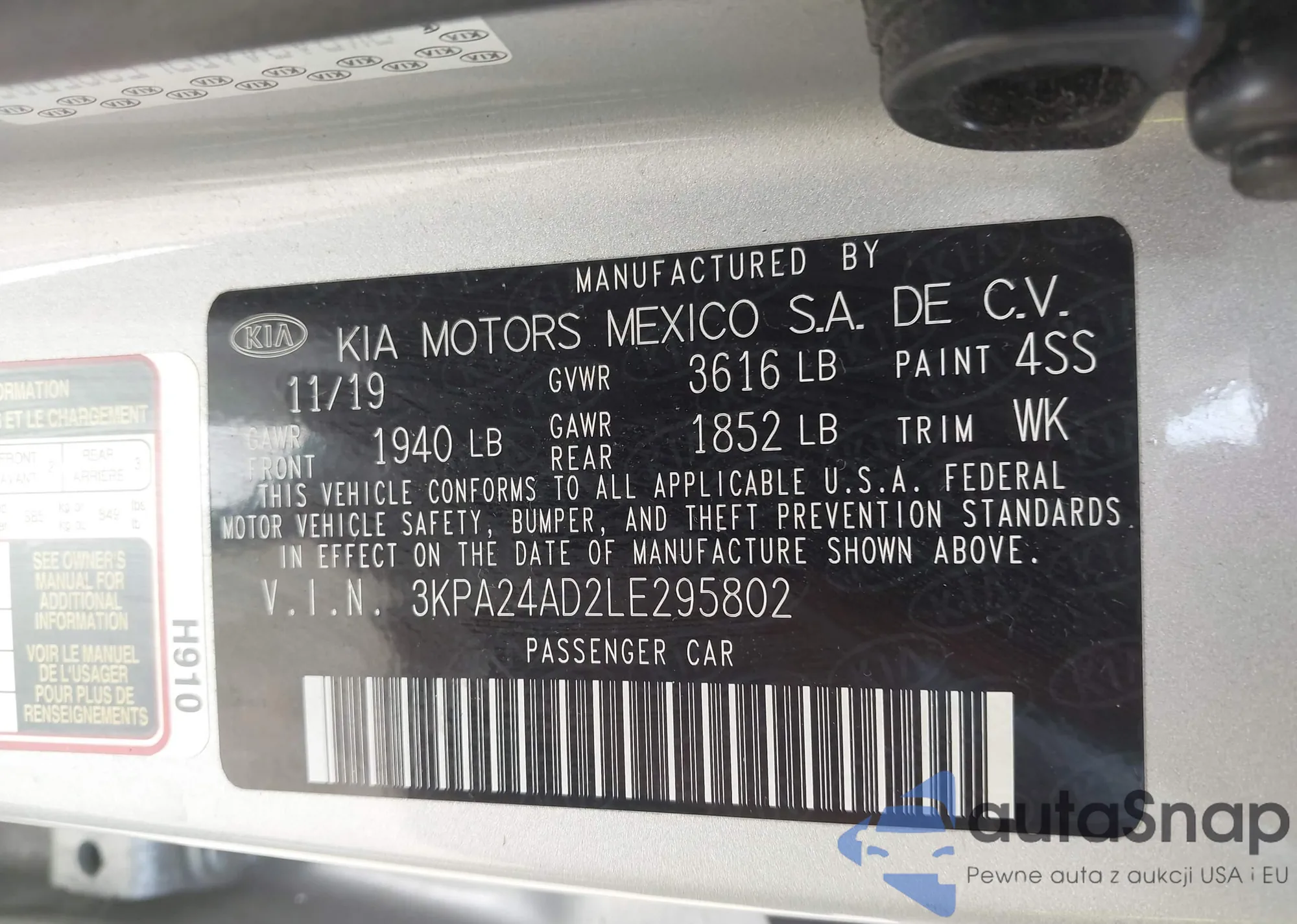 • VIN 3KPA24AD2LE295802