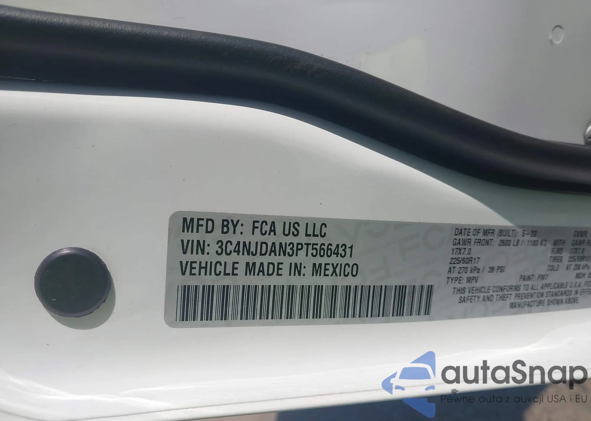 • VIN 3C4NJDAN3PT566431