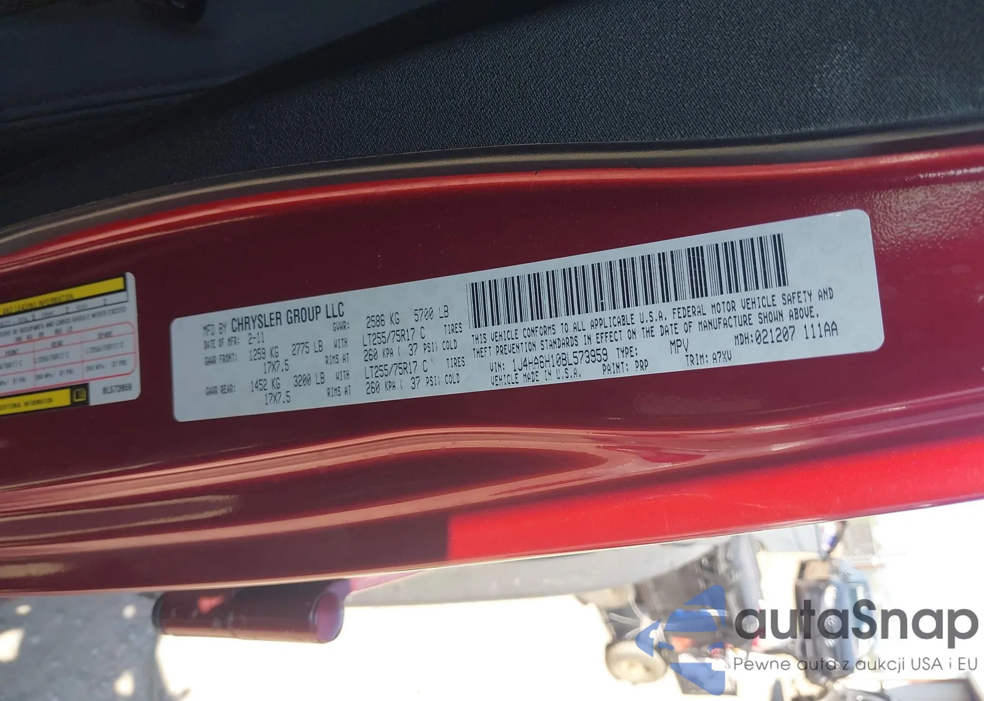 • VIN 1J4HA6H10BL573959