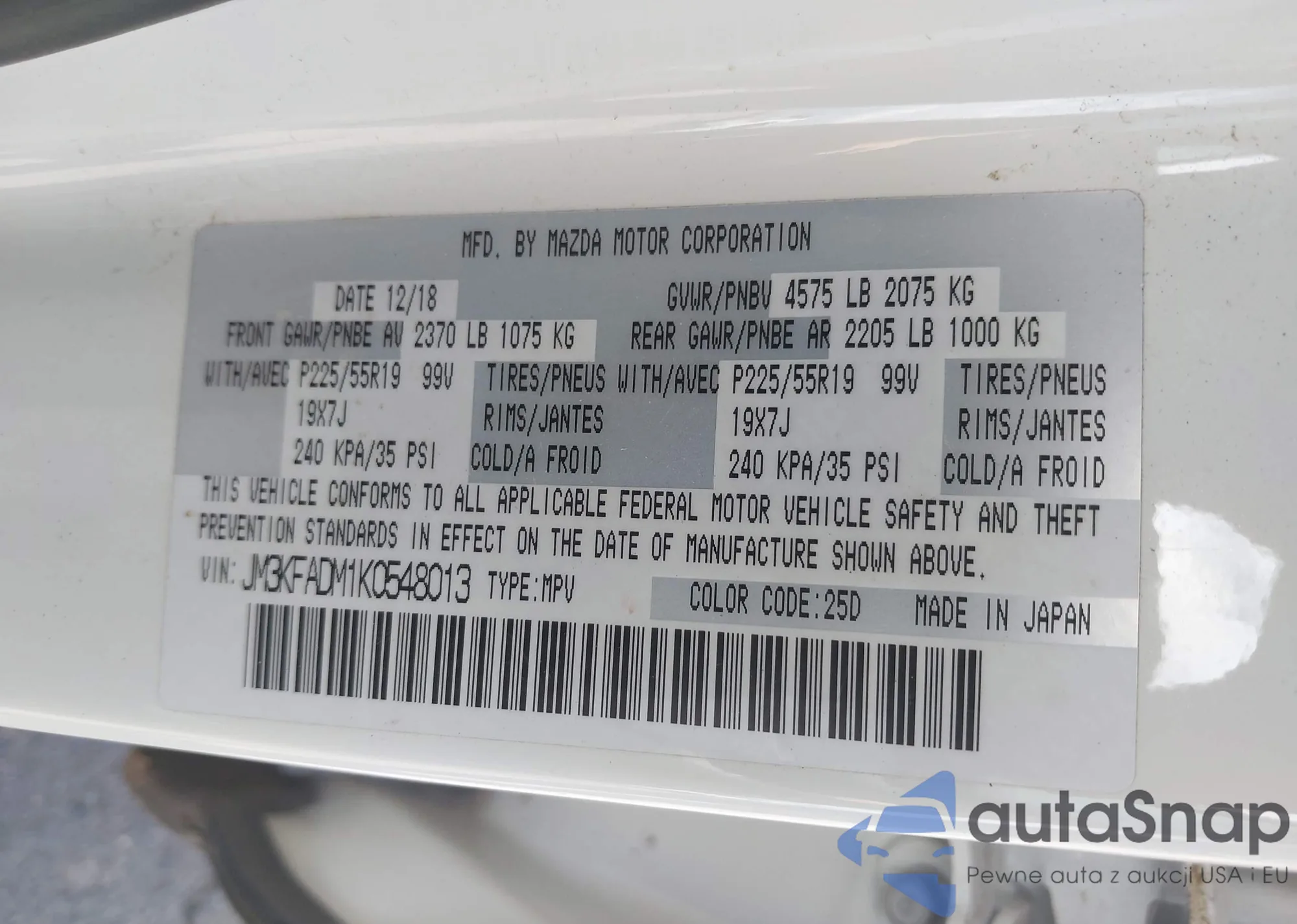 LOT: 42991632 VIN: JM3KFADM1K0548013