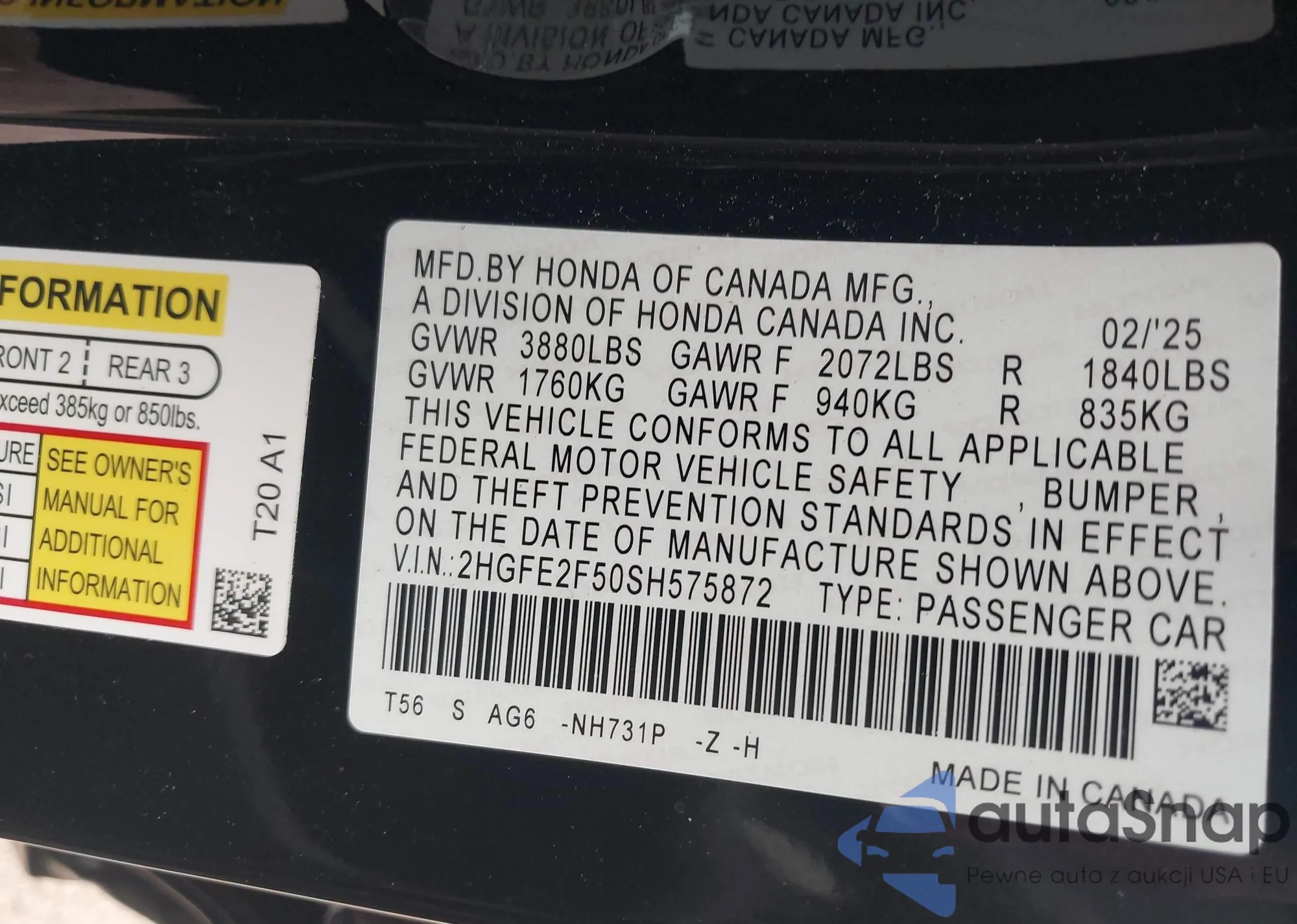 • VIN 19XZE4F90LE013347
