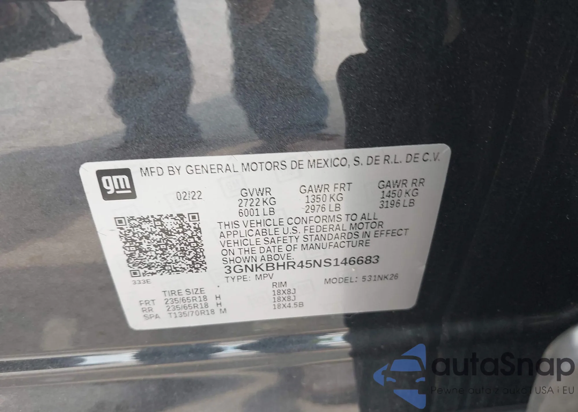 • VIN 3GNKBHR45NS146683