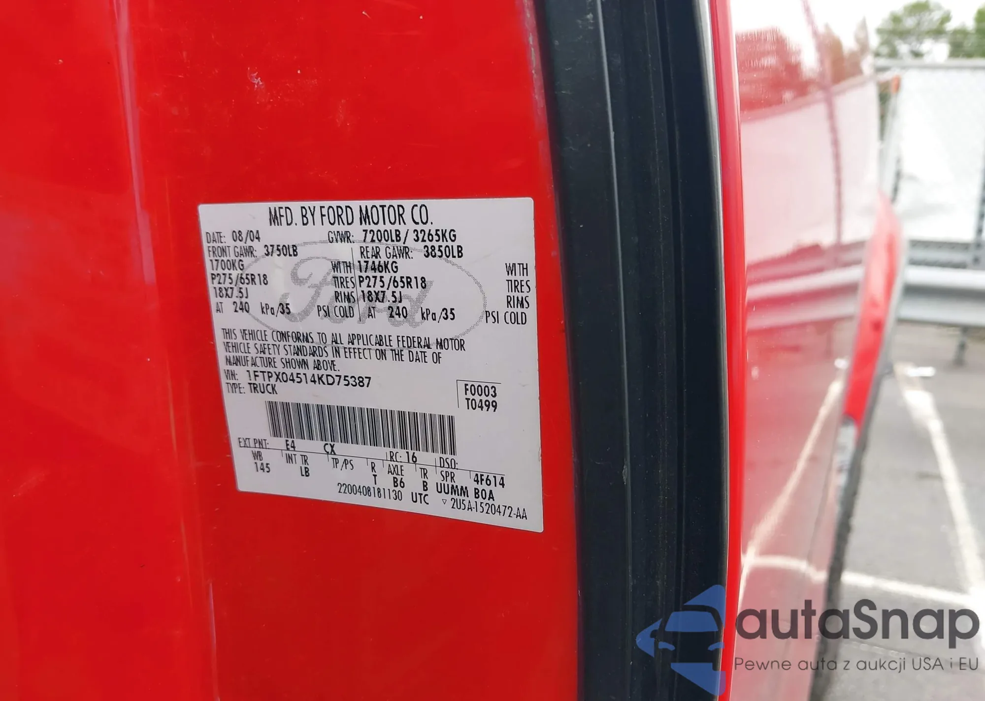 LOT: 42925484 VIN: 1FTPX04514KD75387