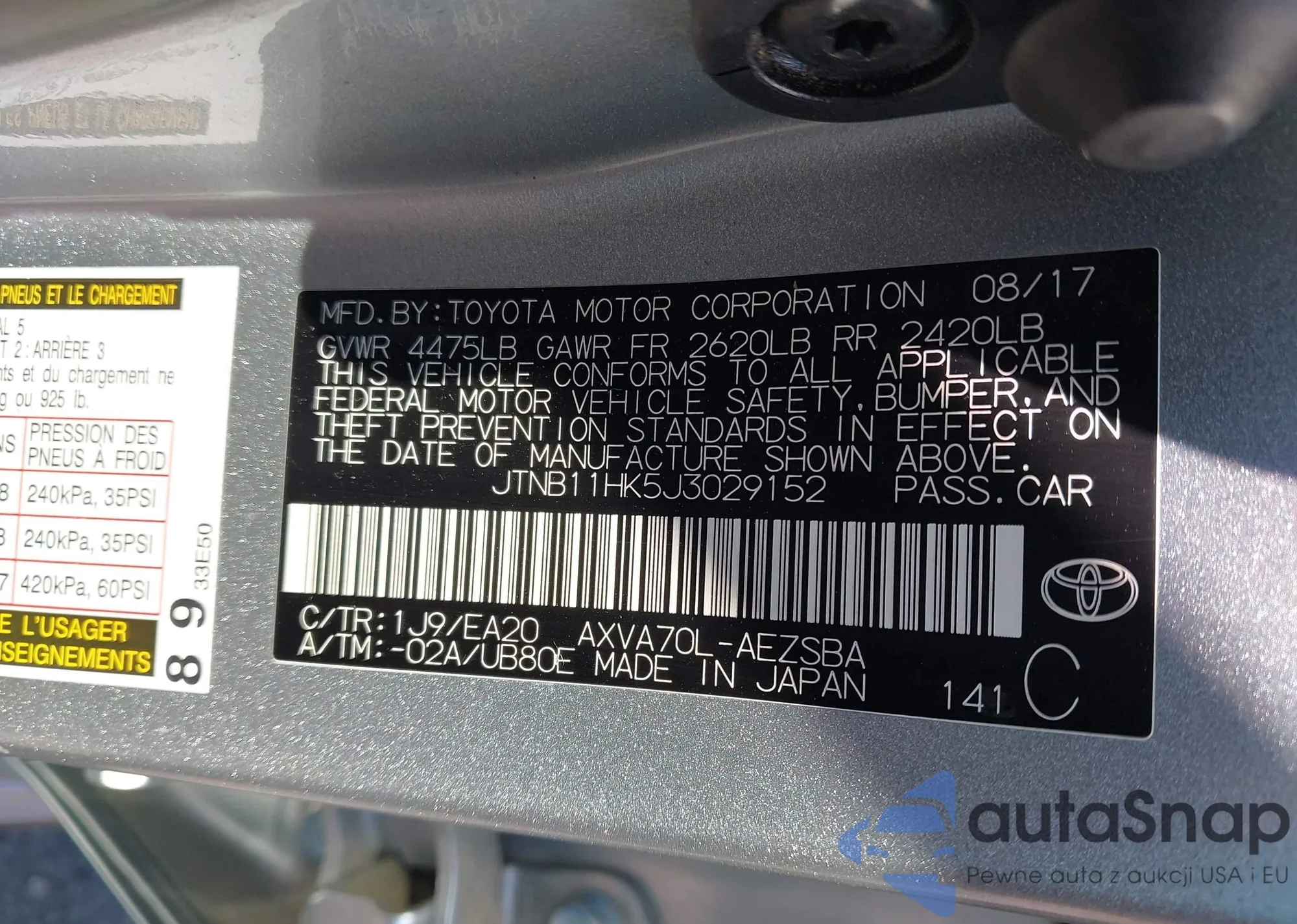 LOT: 43015501 VIN: JTNB11HK5J3029152