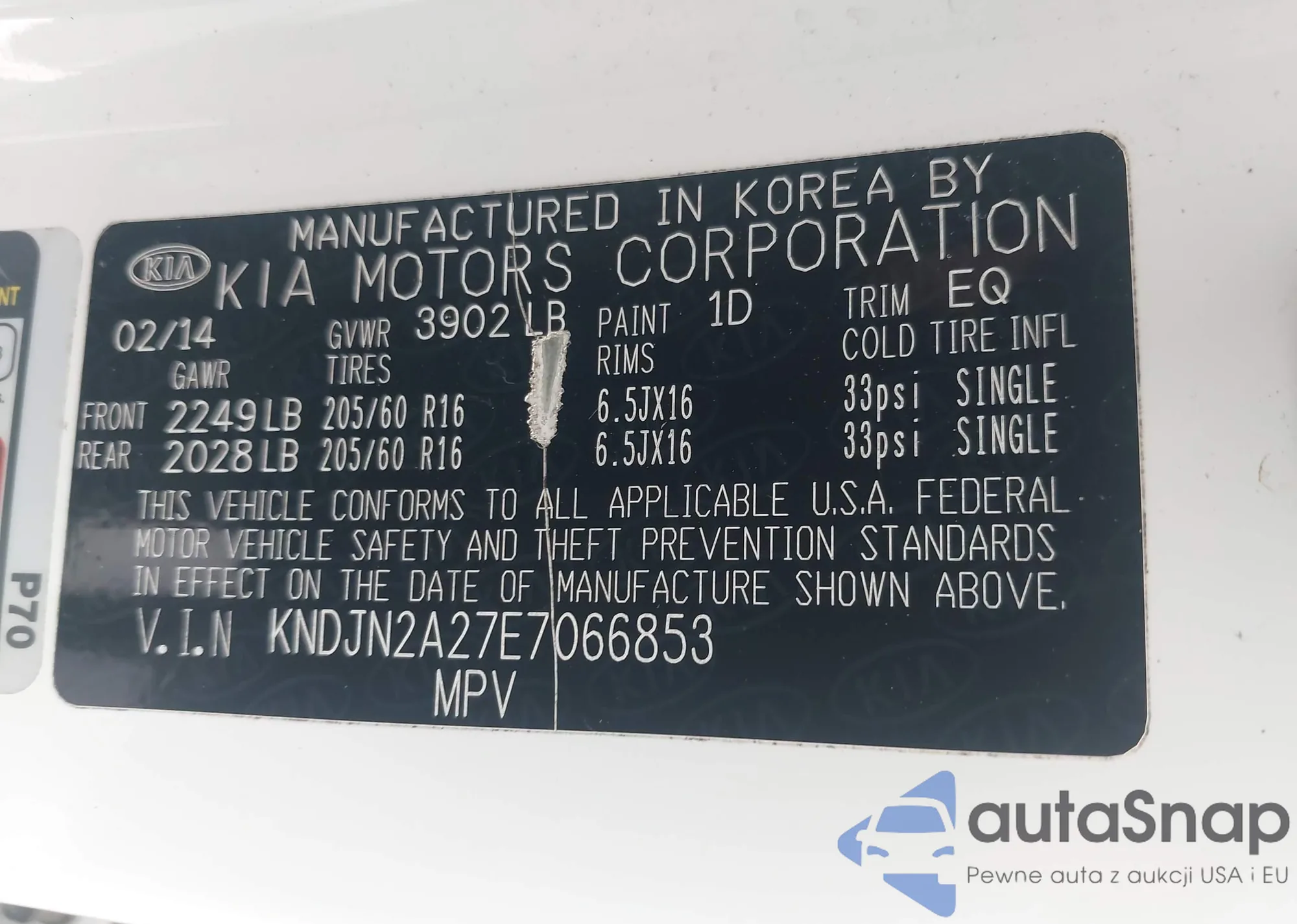 LOT: 42906833 VIN: JTDKN3DU3A0141932