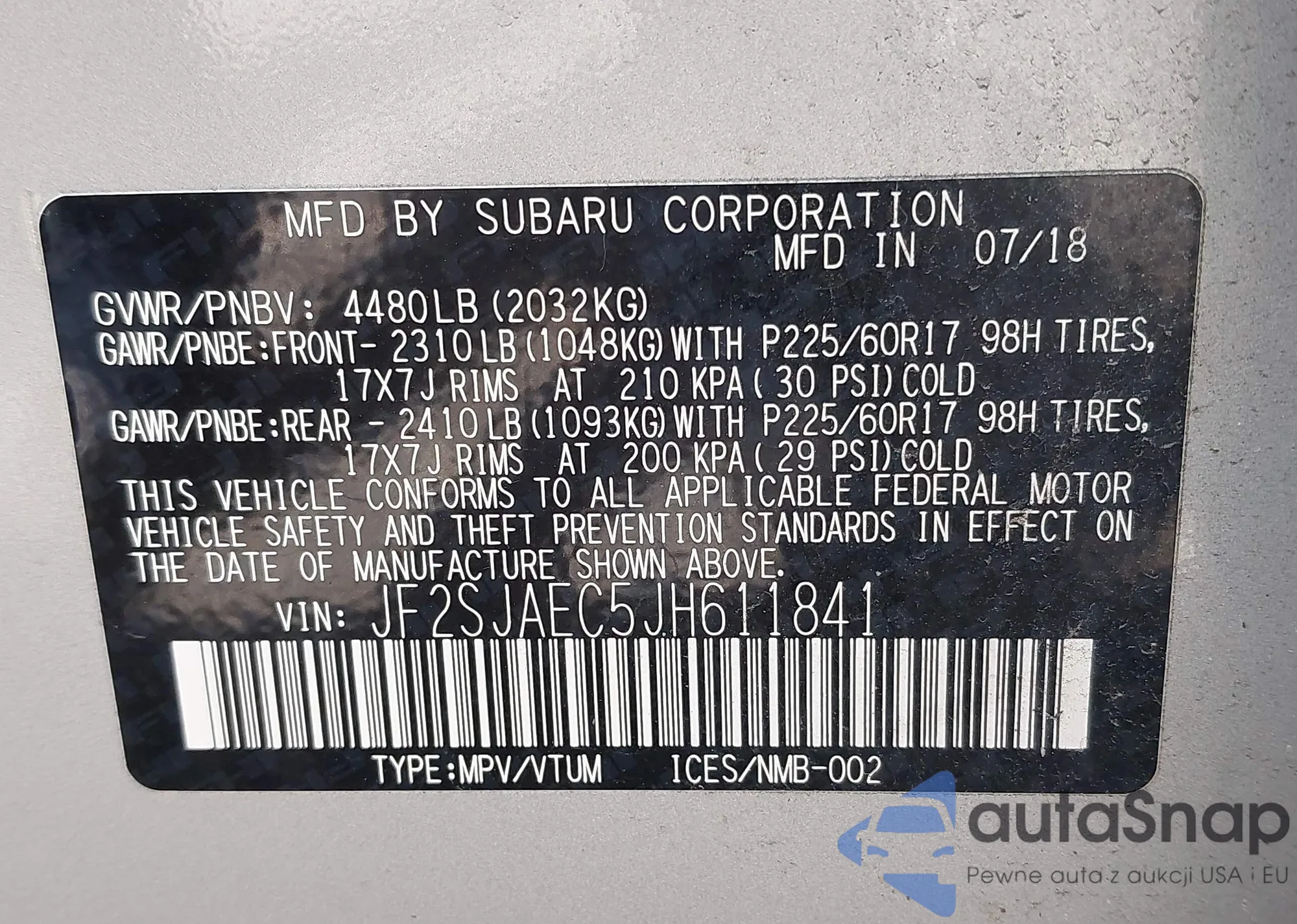 • VIN JF2SJAEC5JH611841