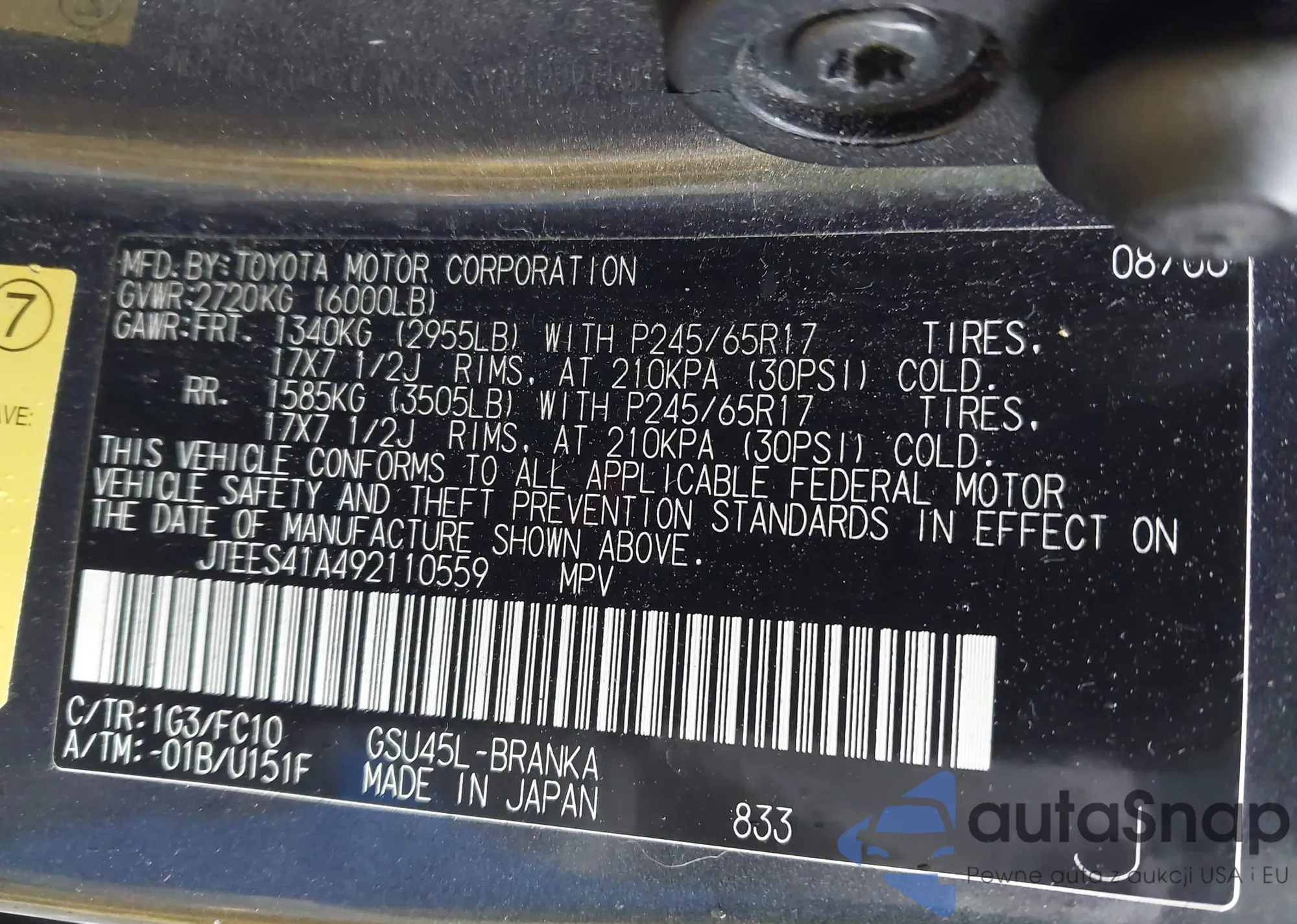 • Lot number 42938265