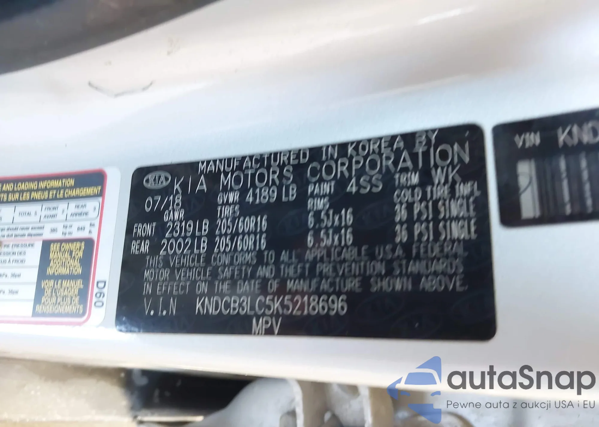 • VIN KNDCB3LC5K5218696