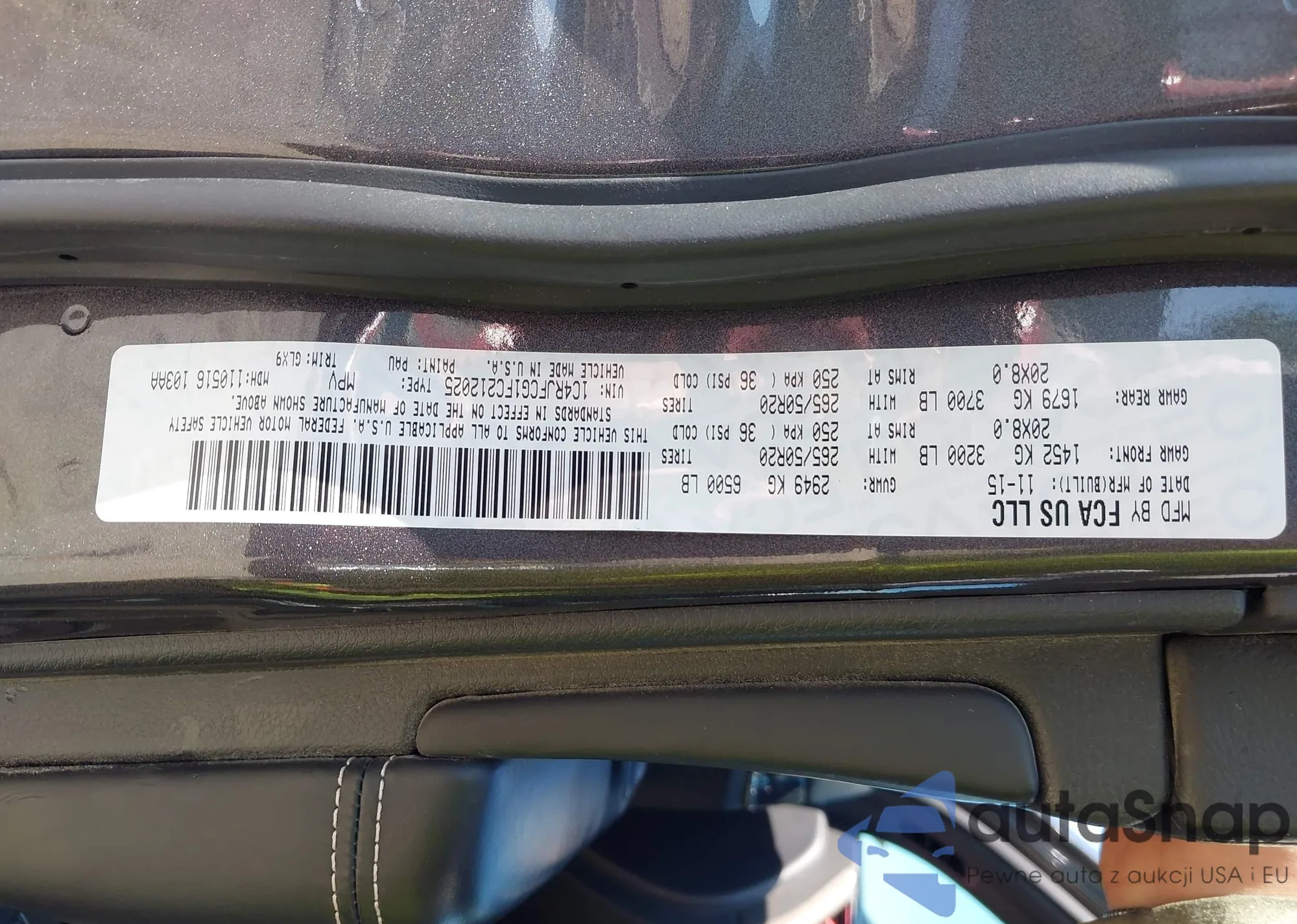 • VIN 1C4RJFCG1FC212025