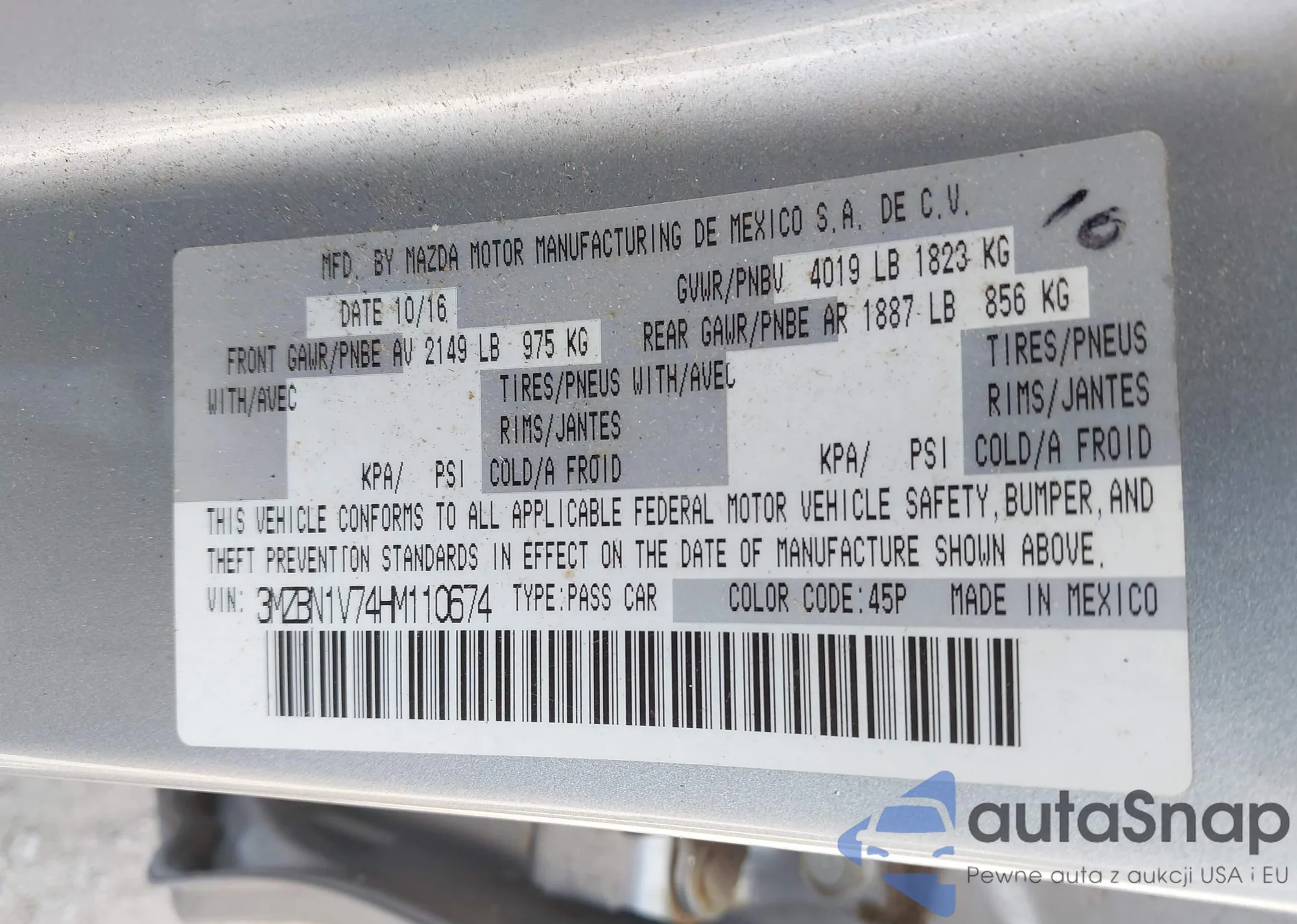 • VIN 3MZBN1V74HM110674