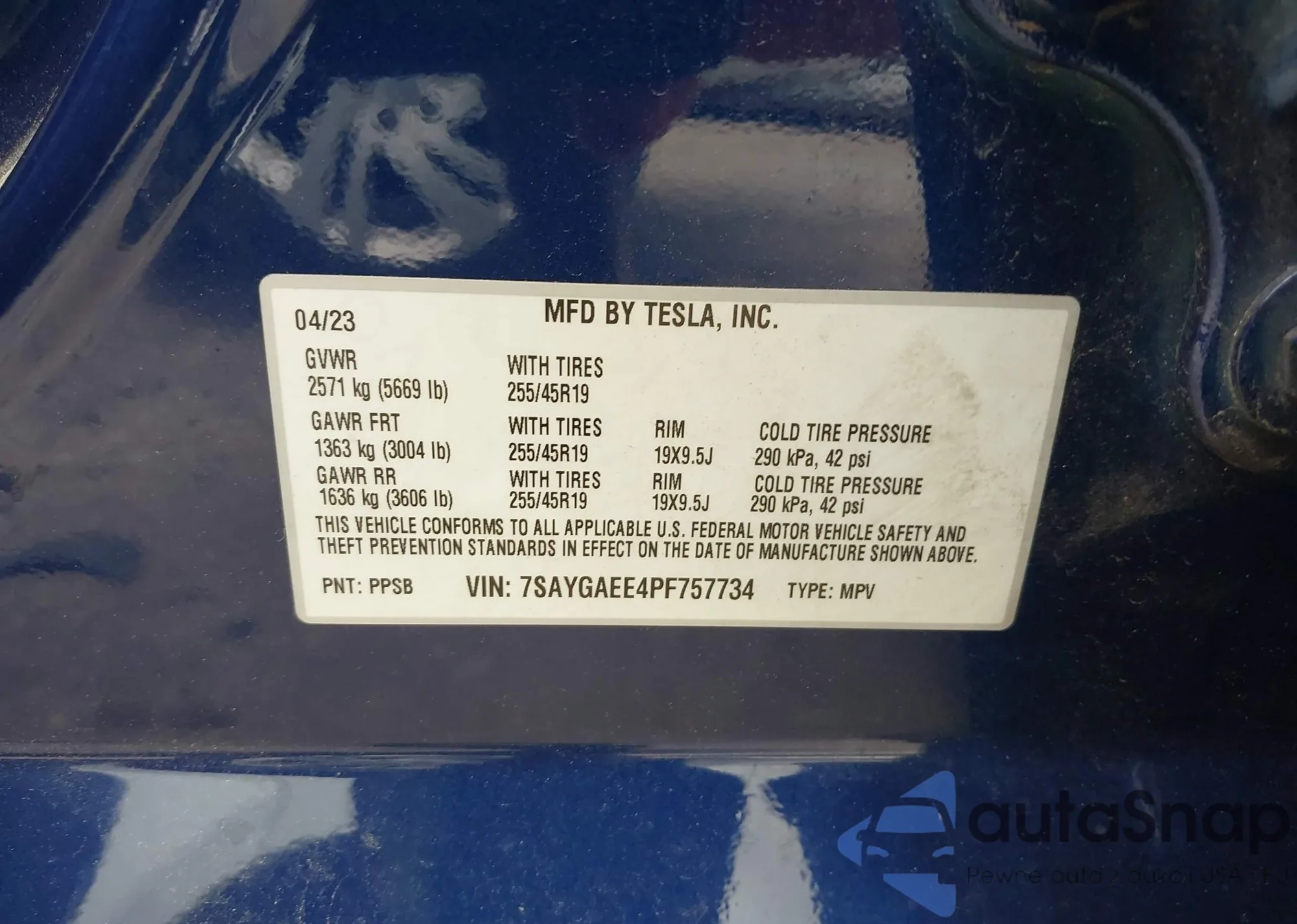 • VIN 7SAYGAEE4PF757734