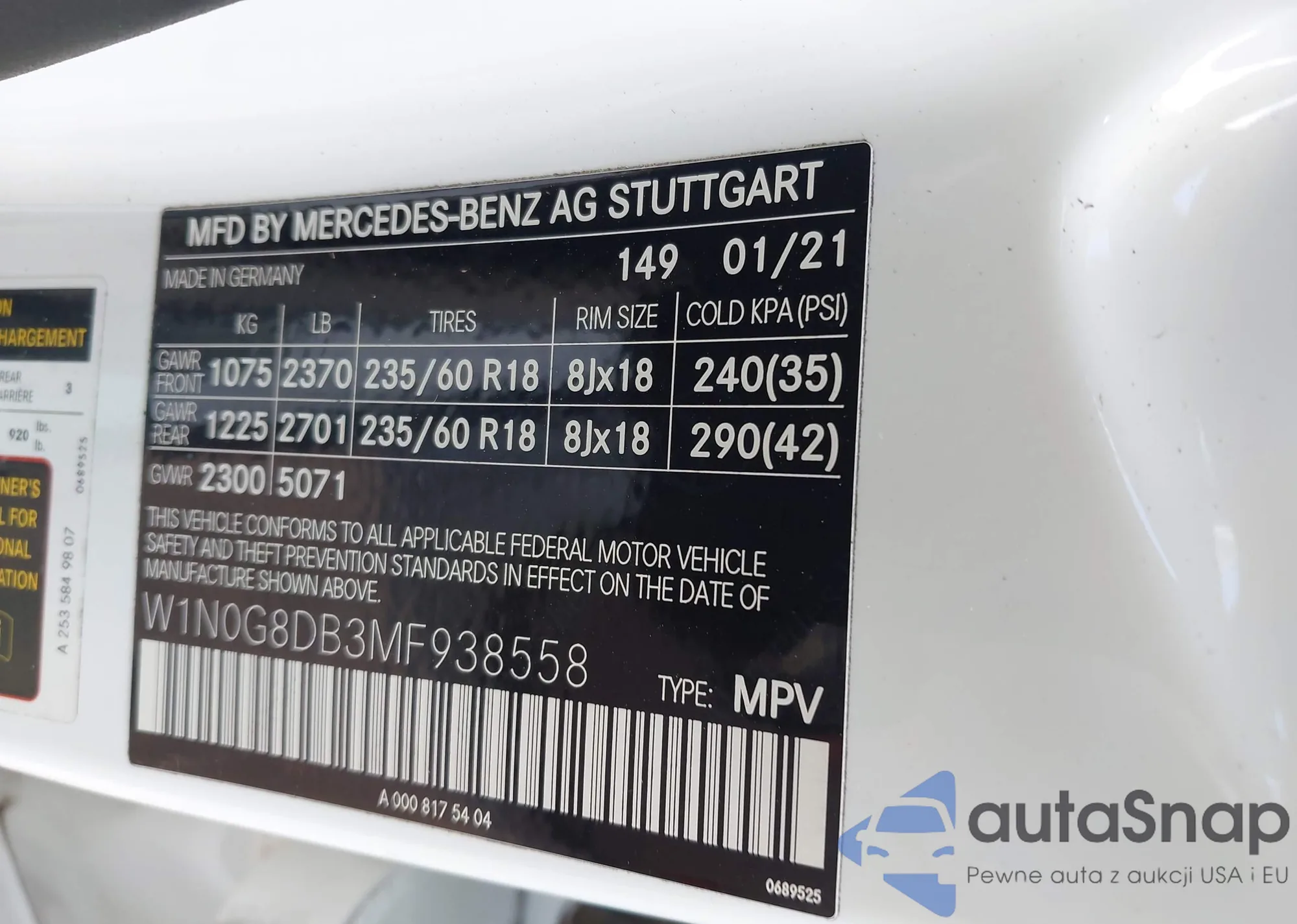 • VIN W1N0G8DB3MF938558