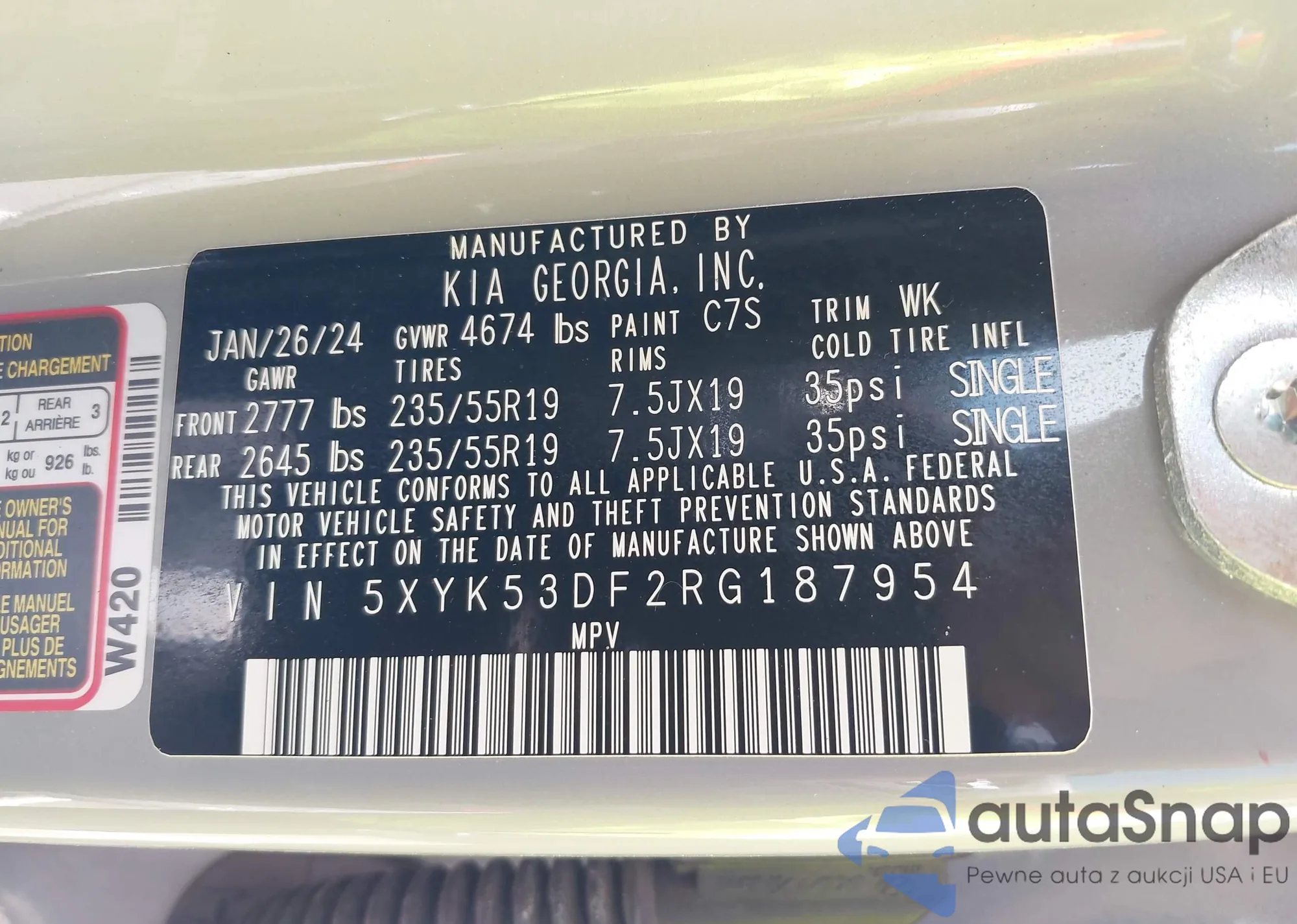 • VIN 5XYK53DF2RG187954