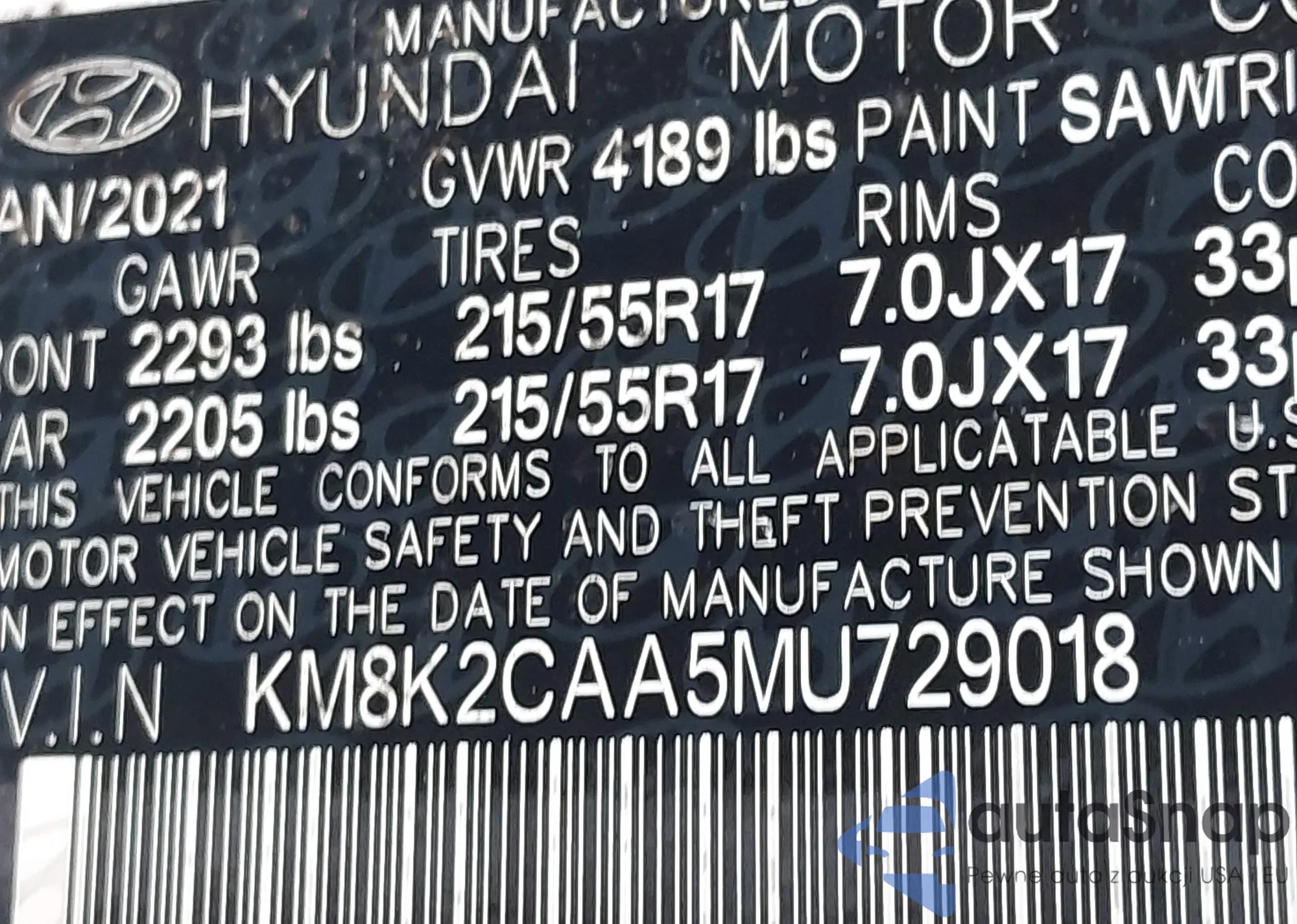 • VIN KM8K2CAA5MU729018
