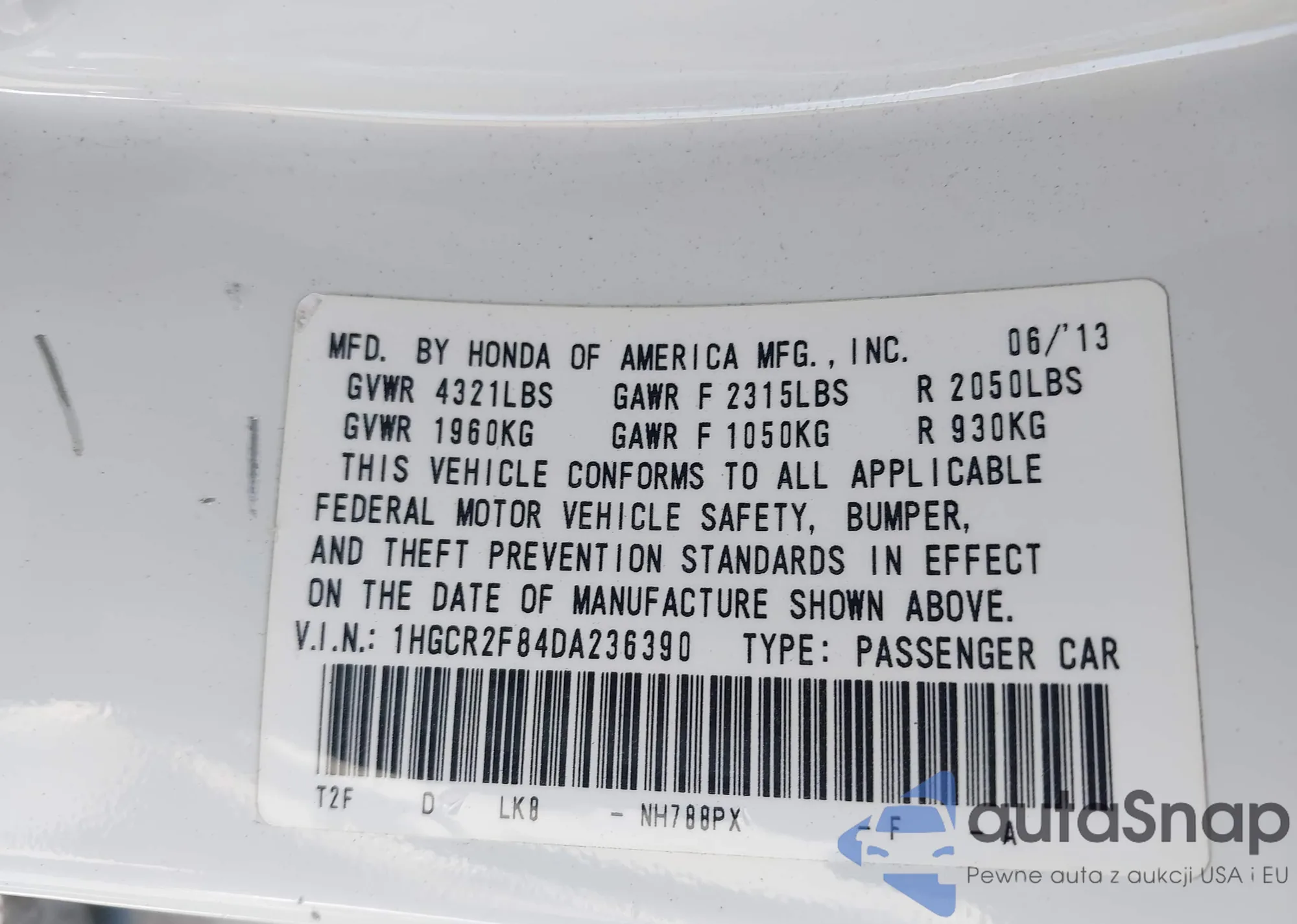 LOT: 43022832 VIN: 1HGCR2F84DA236390