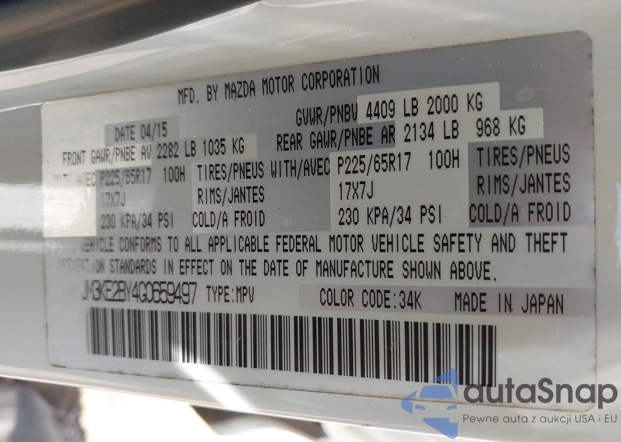 LOT: 42534708 VIN: JM3KE4CY7G0640906