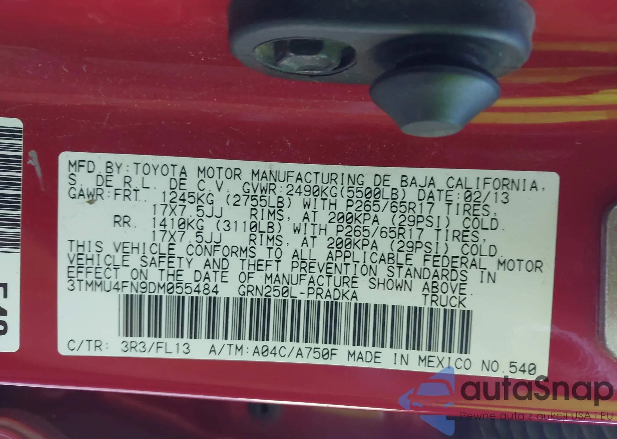 • VIN 3TMMU4FN9DM055484