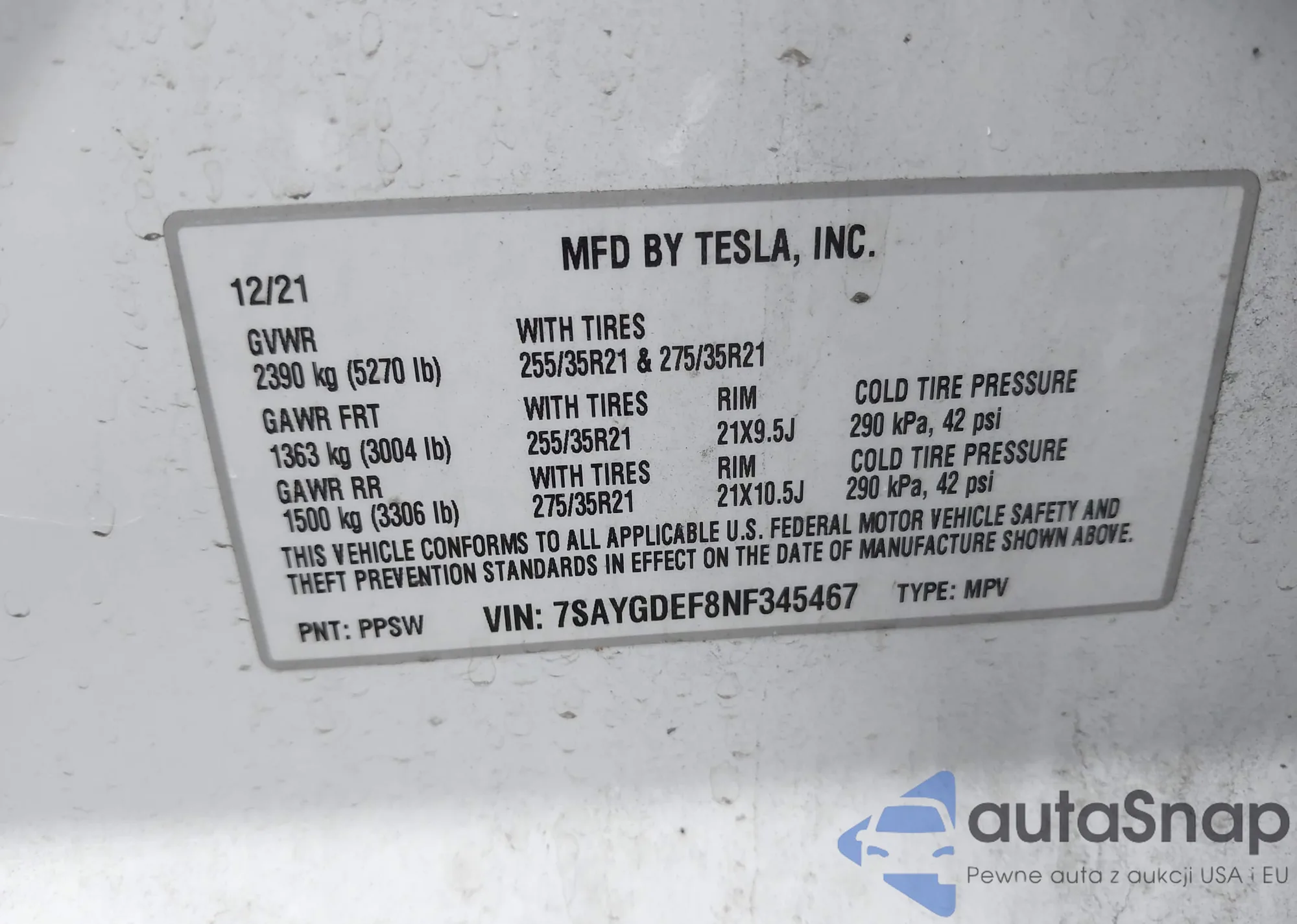LOT: 42960982 VIN: 3N1AB8DV7NY258227