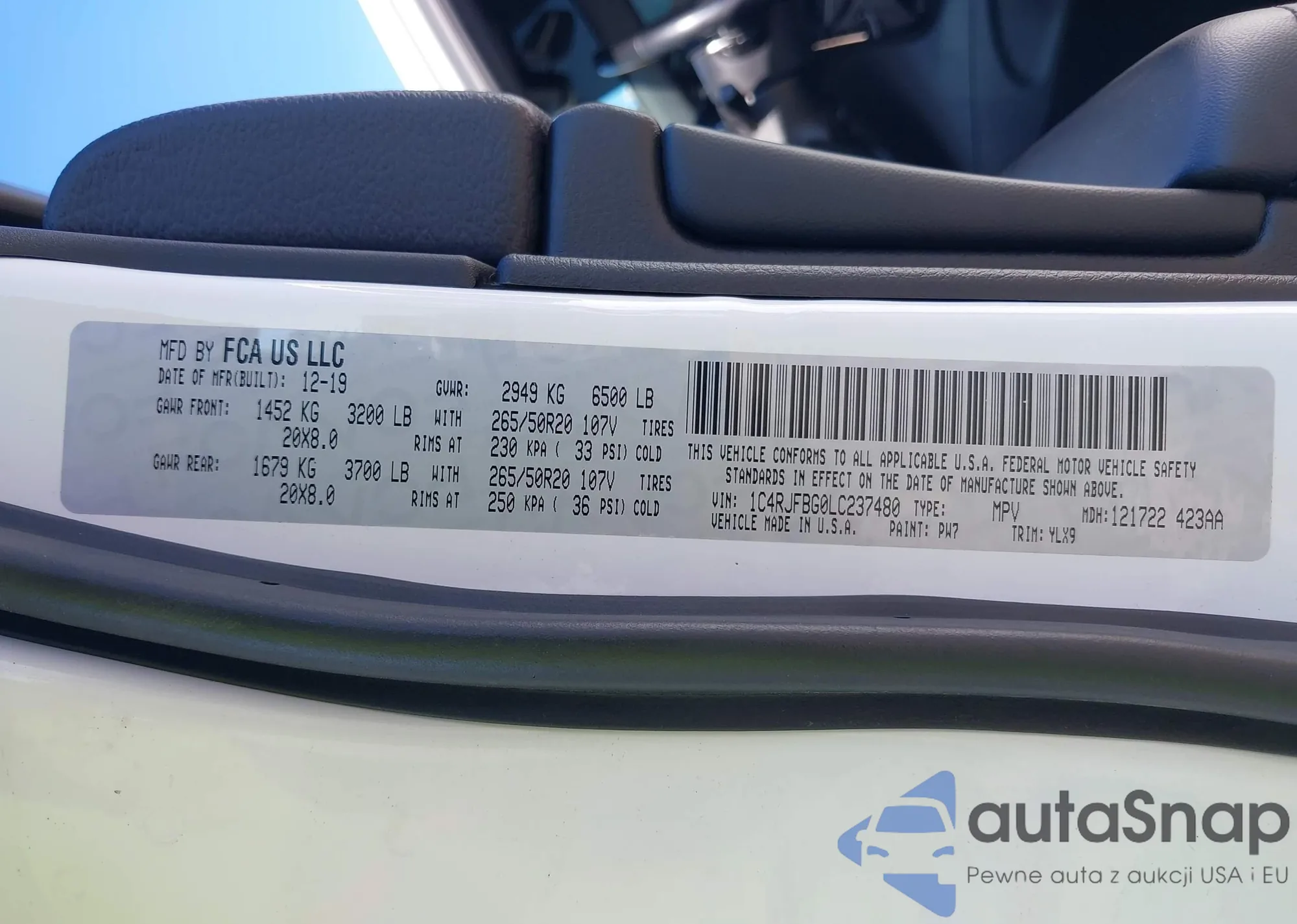 • VIN 1C4RJFBG0LC237480