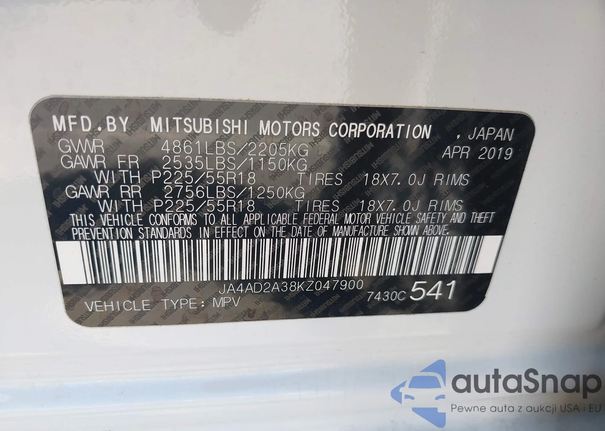 • VIN JA4AD2A38KZ047900