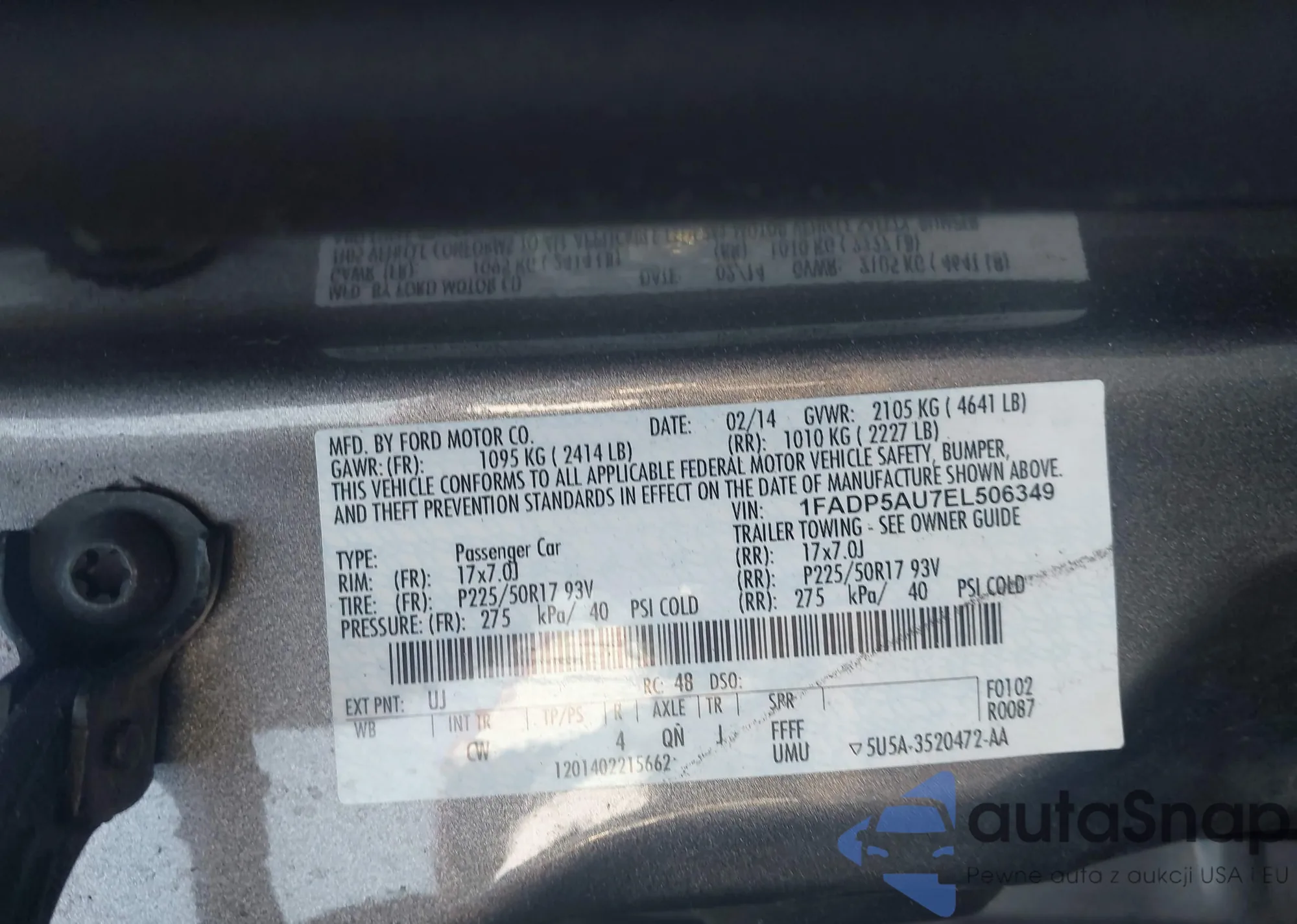 • VIN 1FADP5AU7EL506349