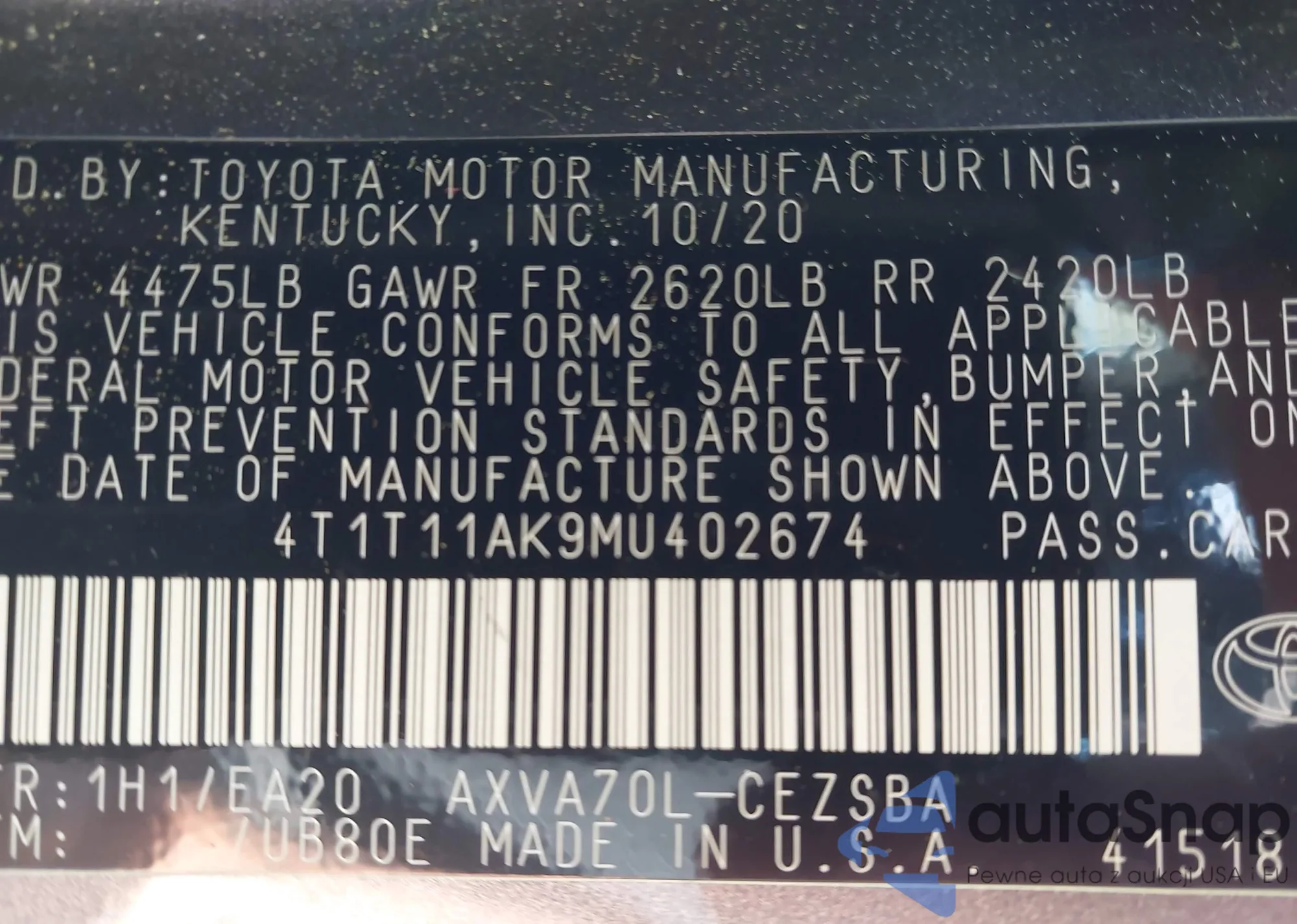 LOT: 42978467 VIN: JTDKT903295221291
