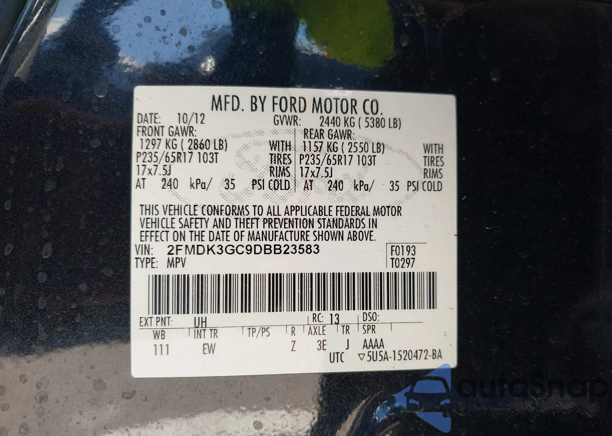 • VIN 2FMDK3GC9DBB23583
