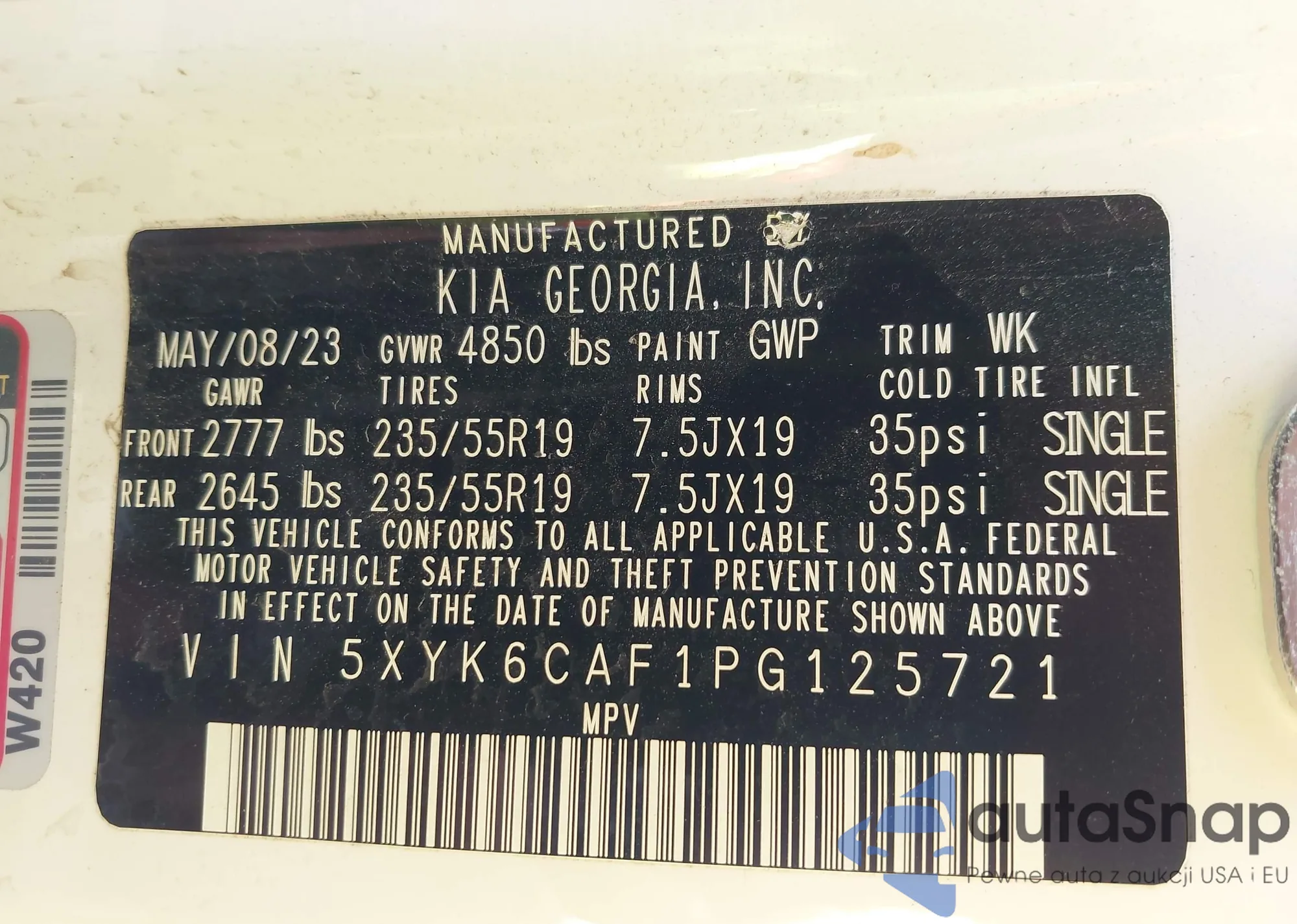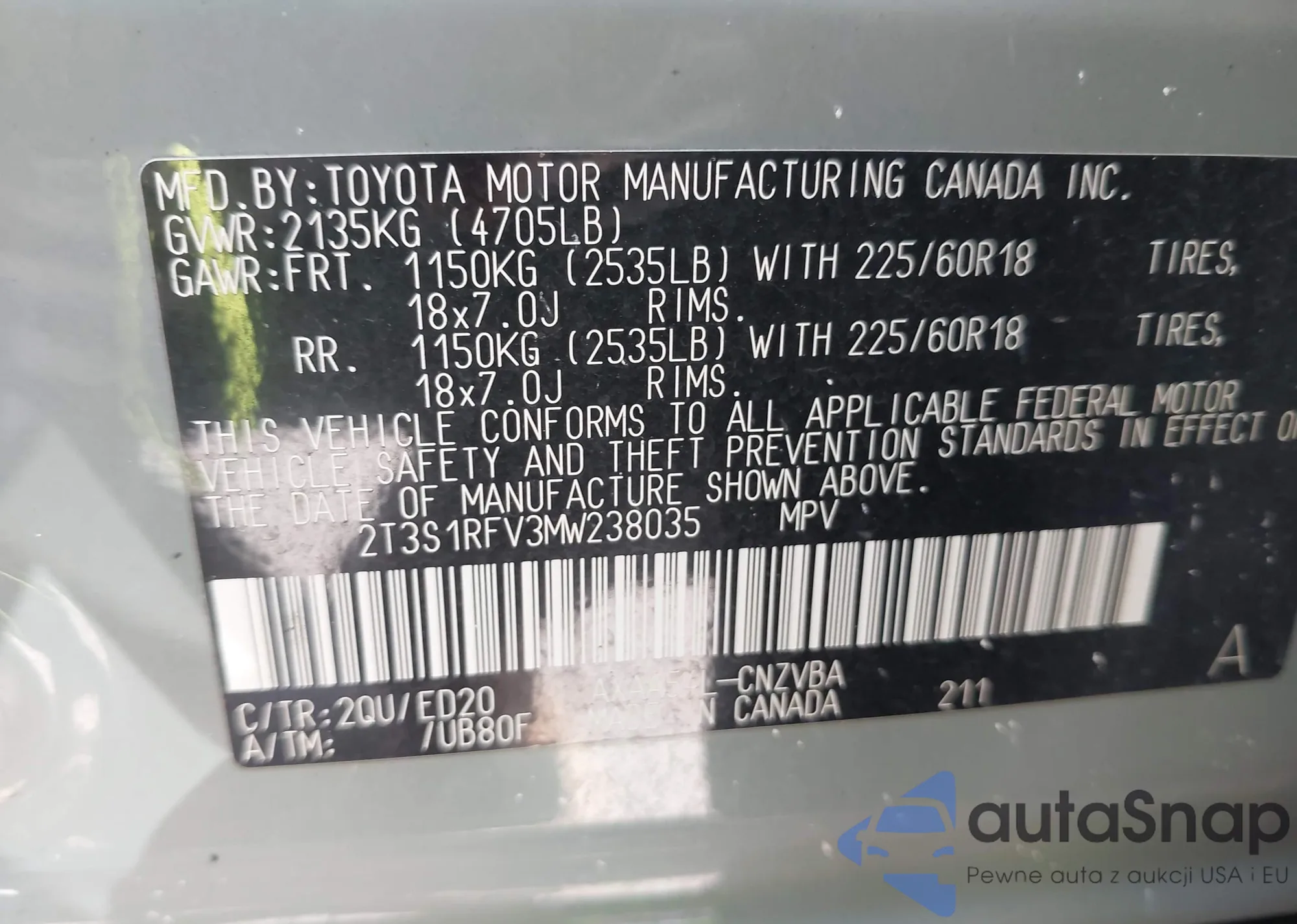 LOT: 42855011 VIN: 2T3S1RFV3MW238035
