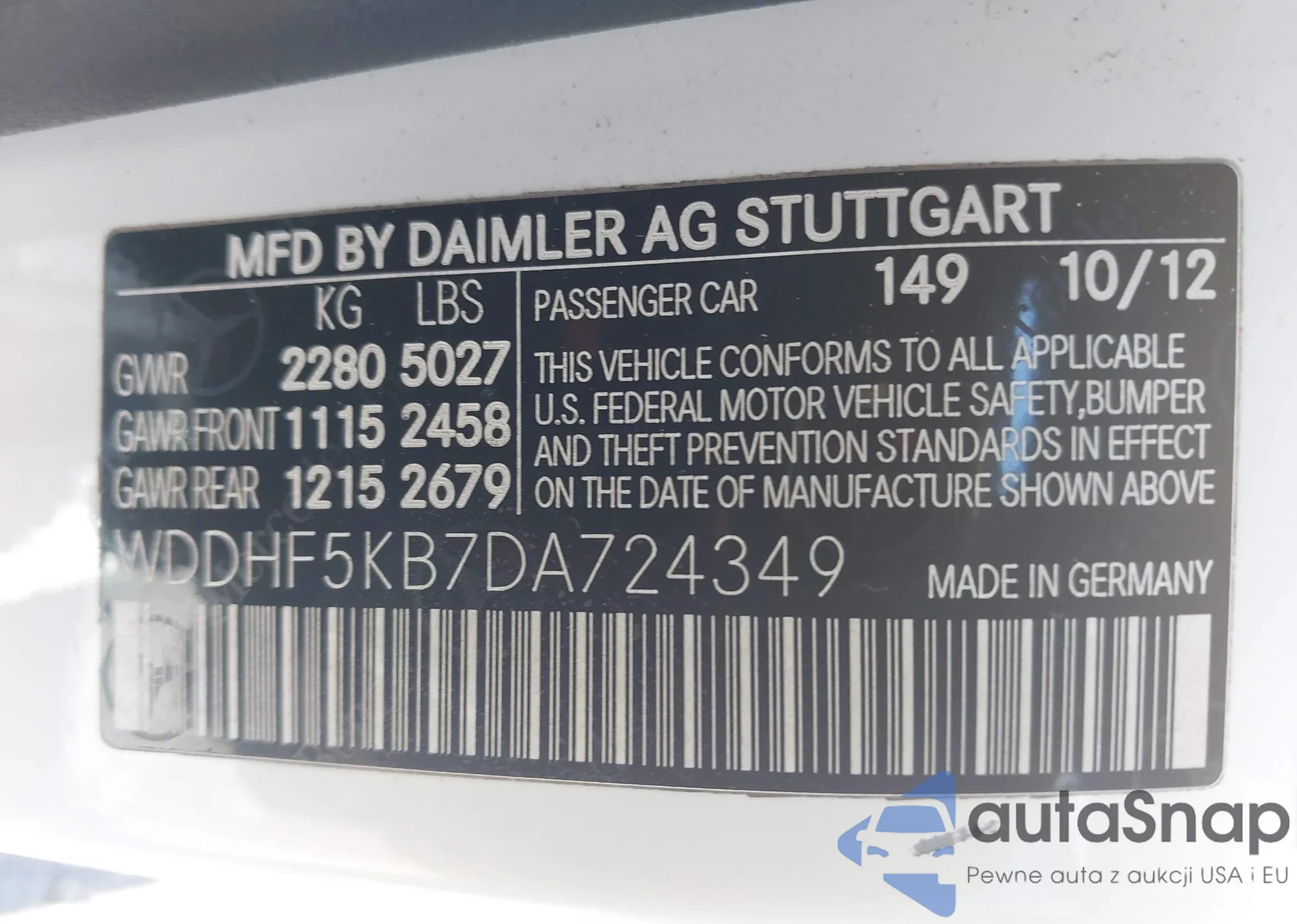 • VIN WDDHF5KB7DA724349