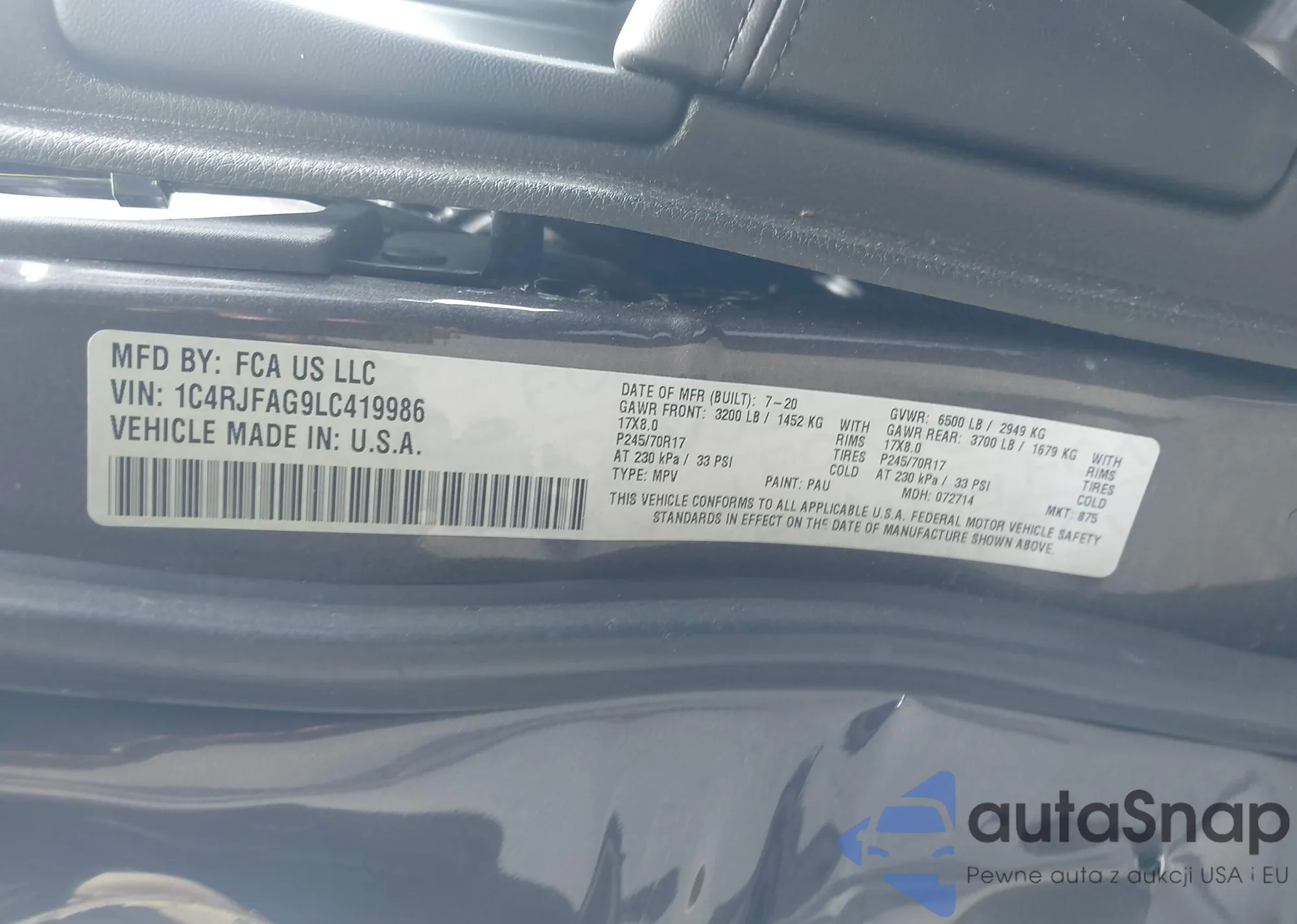 LOT: 42492105 VIN: 1C4RJFBG3GC350961