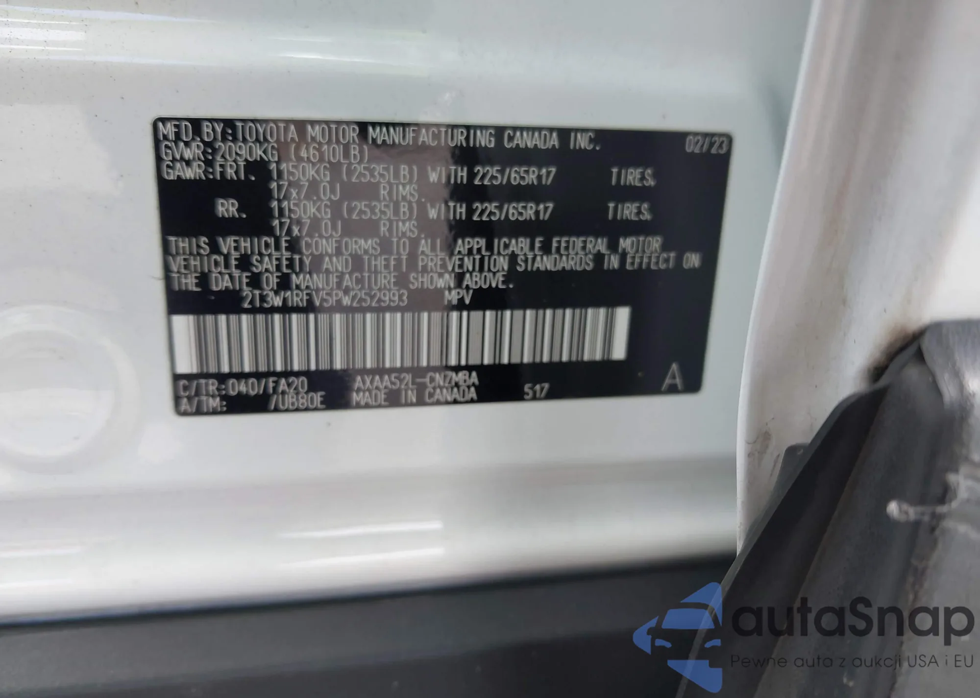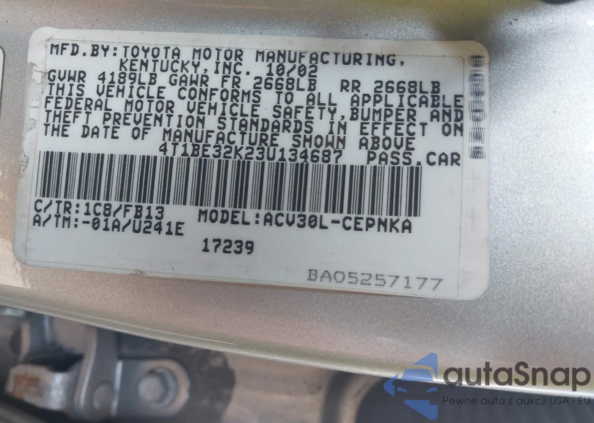 • VIN 4T1BF1FK2DU237993