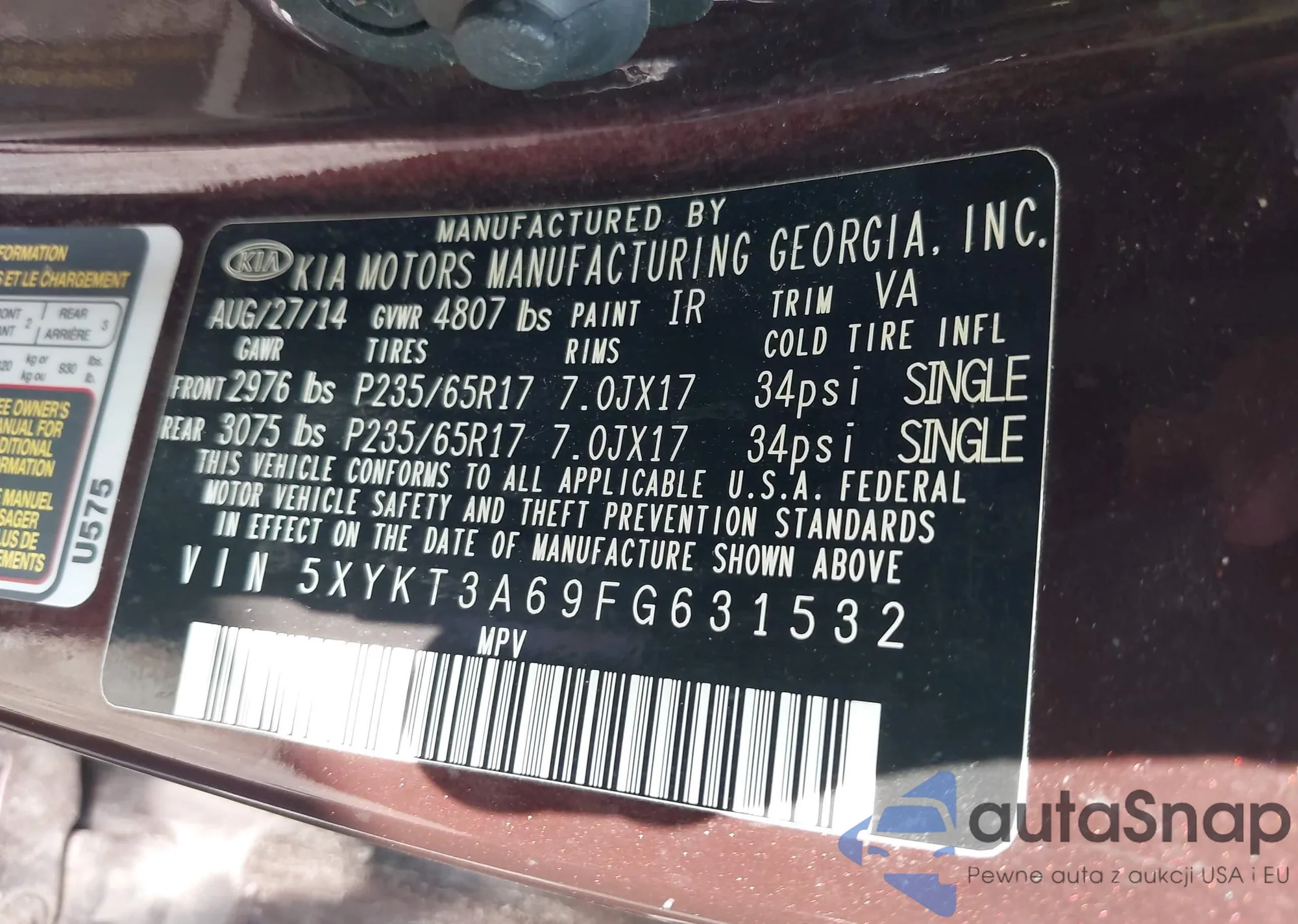 • VIN 5XYKT3A69FG631532