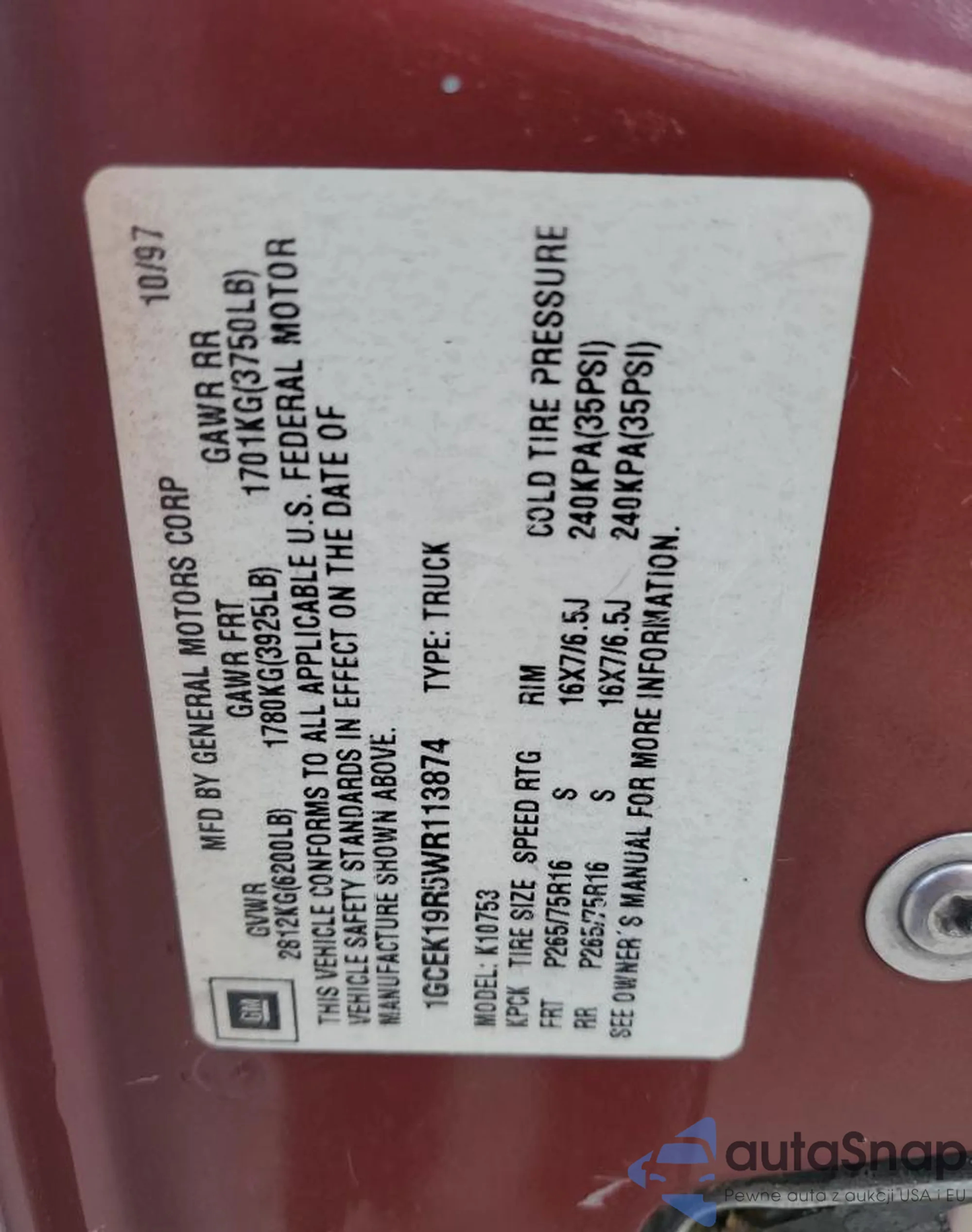 • VIN 1GCEK14R8WZ135262