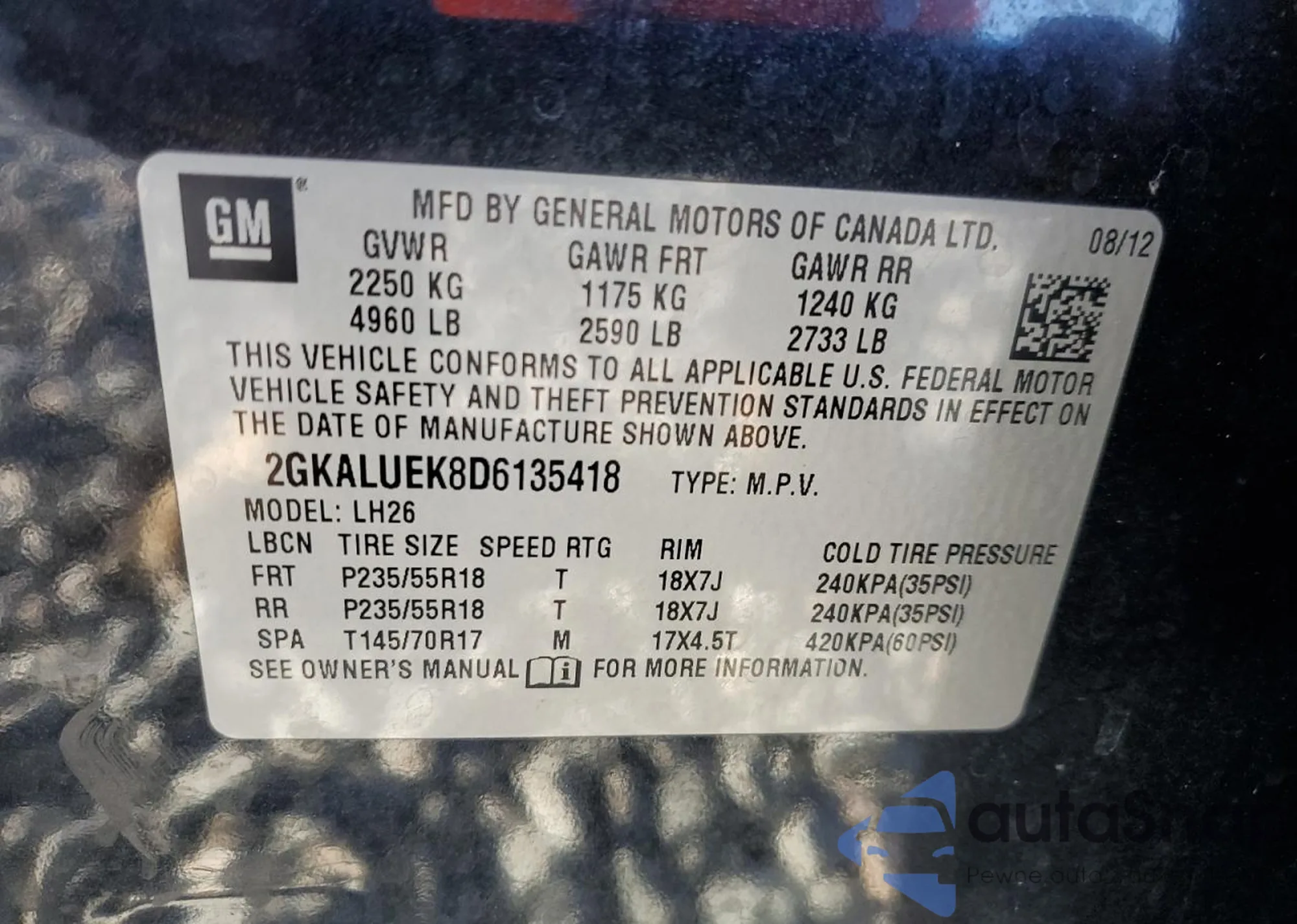• VIN 5J6RM4H51CL014621